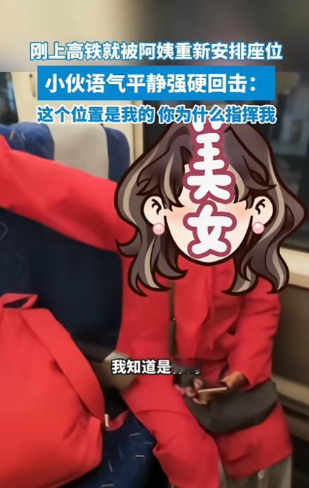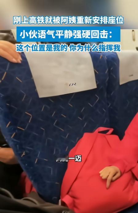 当天,贵州境内一趟高铁上,乘客们正常检票上车,找自己的座位,一个年轻小伙提着行李,按车票信息找到自己的位置,刚要坐下,旁边一位穿红衣的阿姨就直接对着他发号施令。