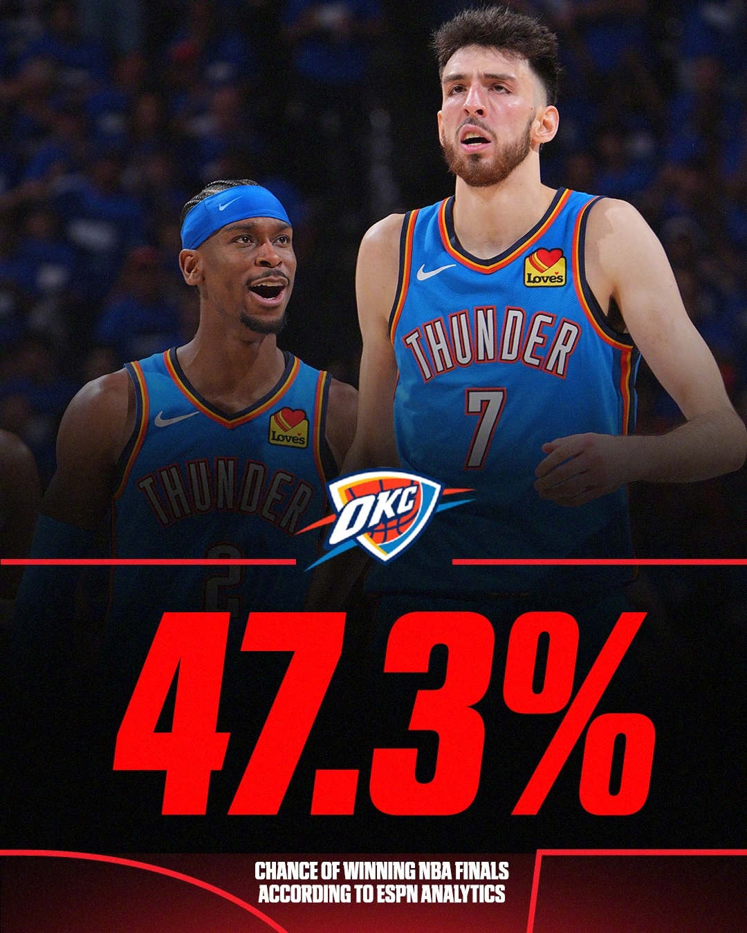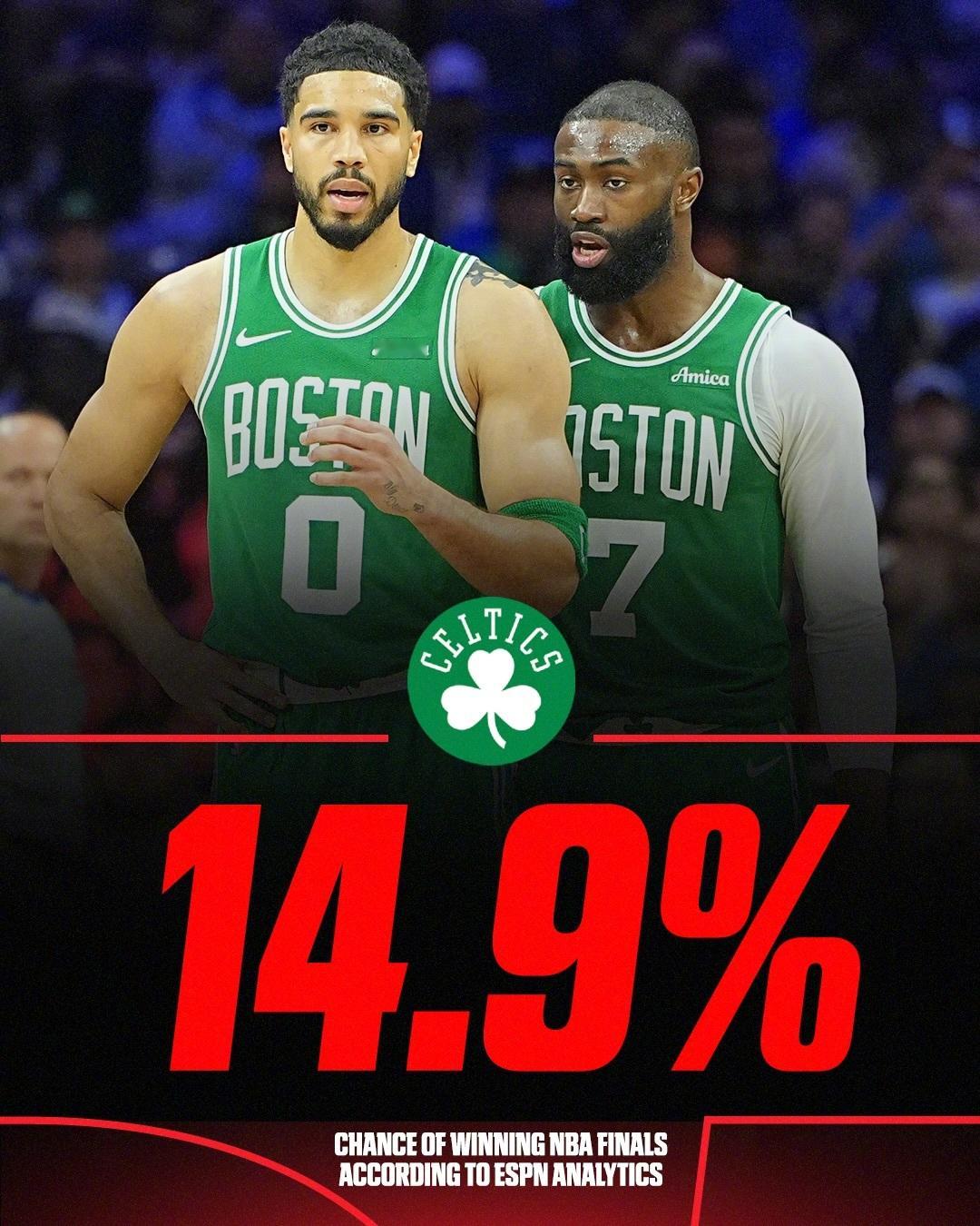 ESPN给出的总冠军概率预测!前三热门是雷霆、马刺还有凯尔特人!