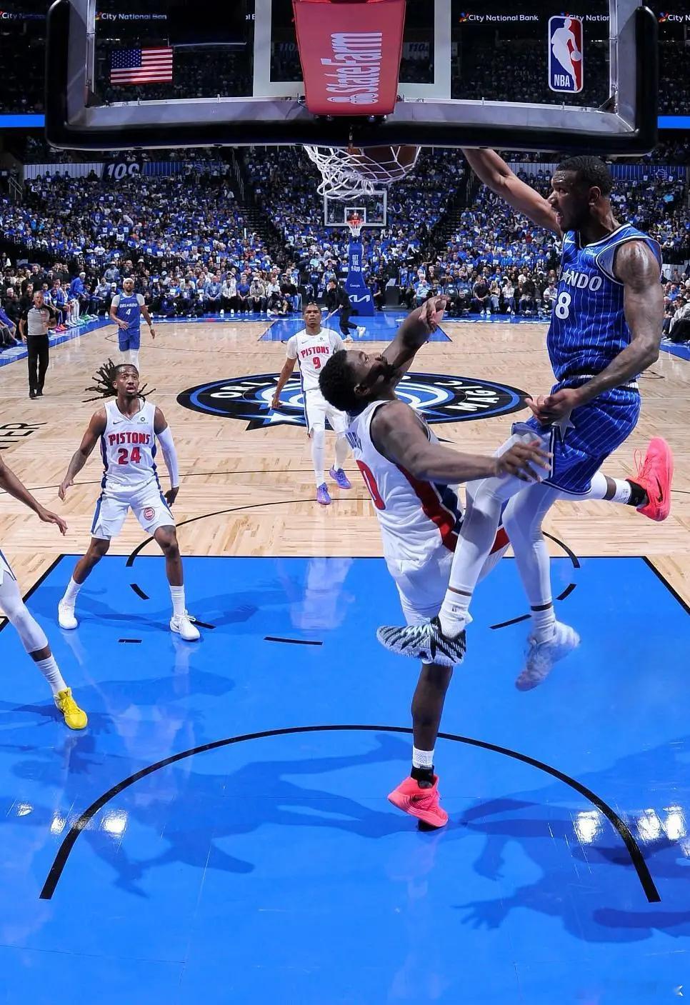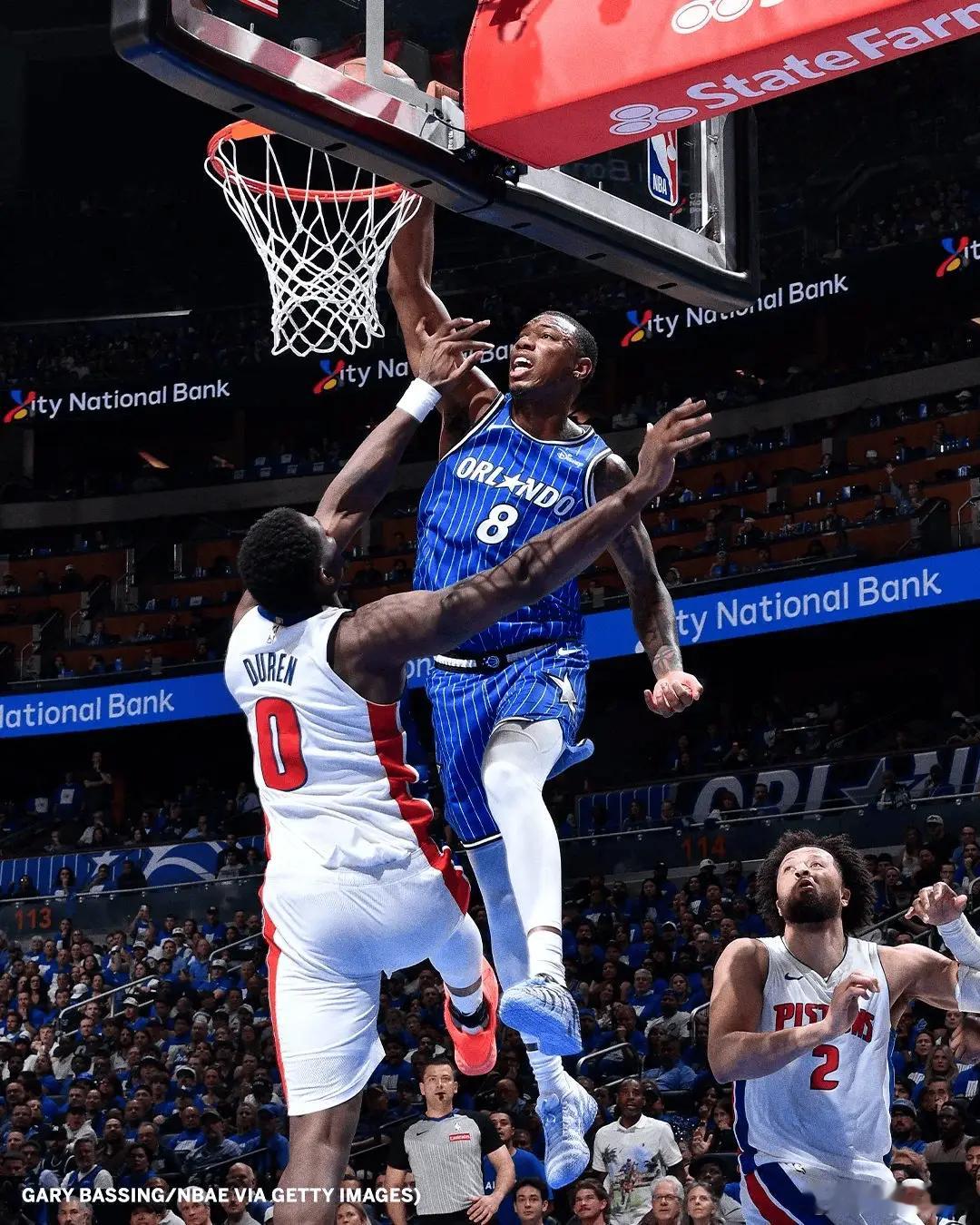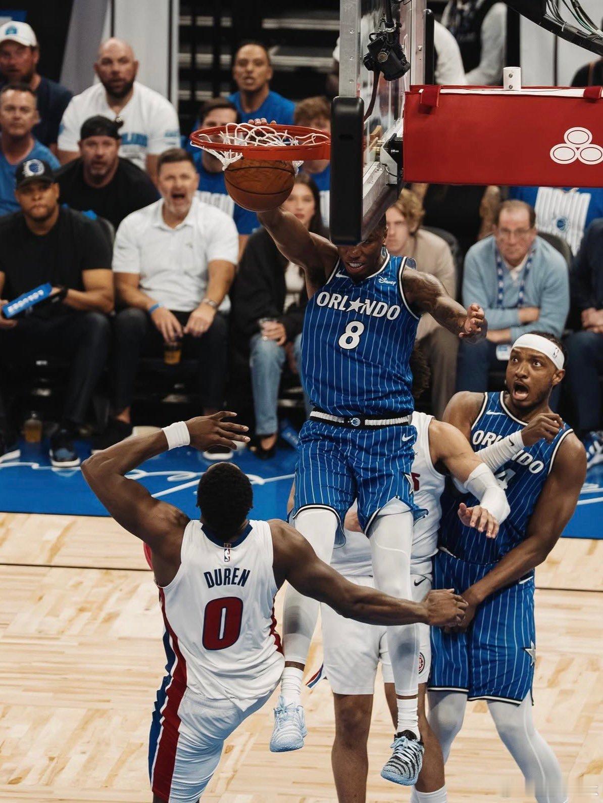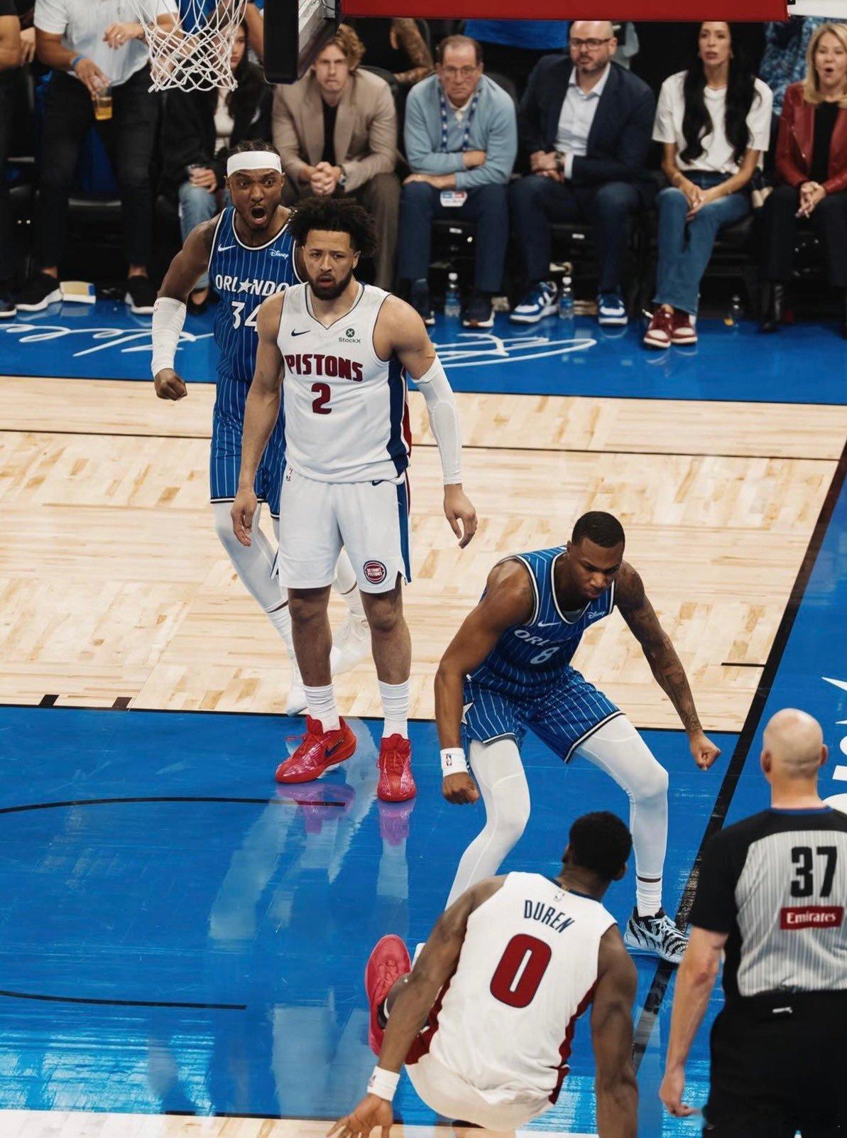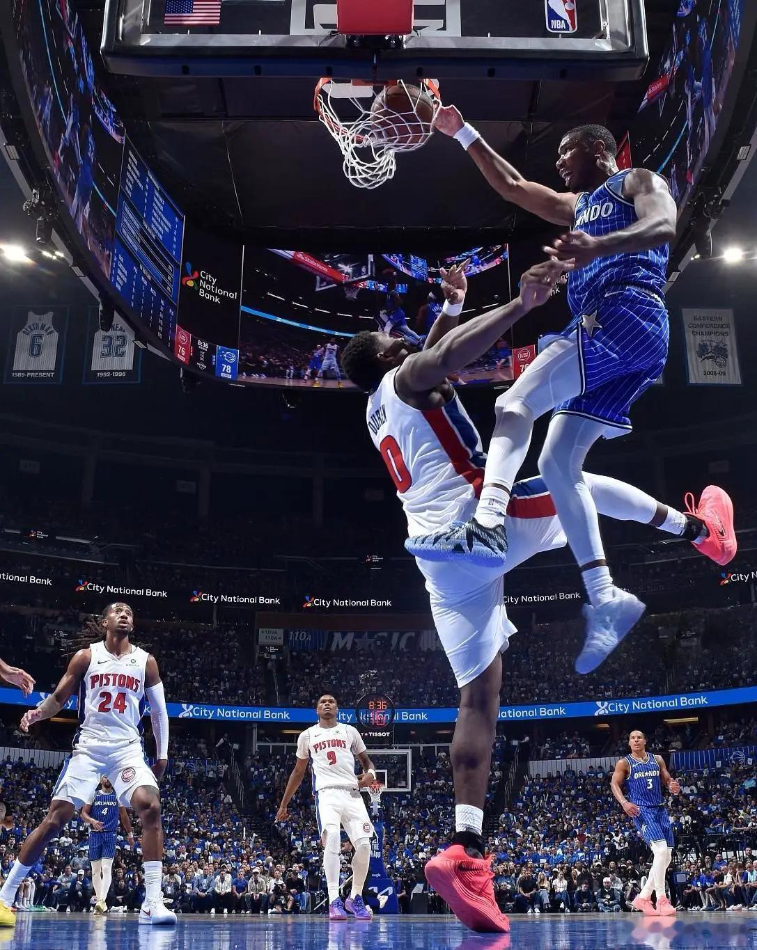 卡因单臂战斧隔扣杜伦的定格照,注意坎宁安的表情⚠️nba魔术vs活塞