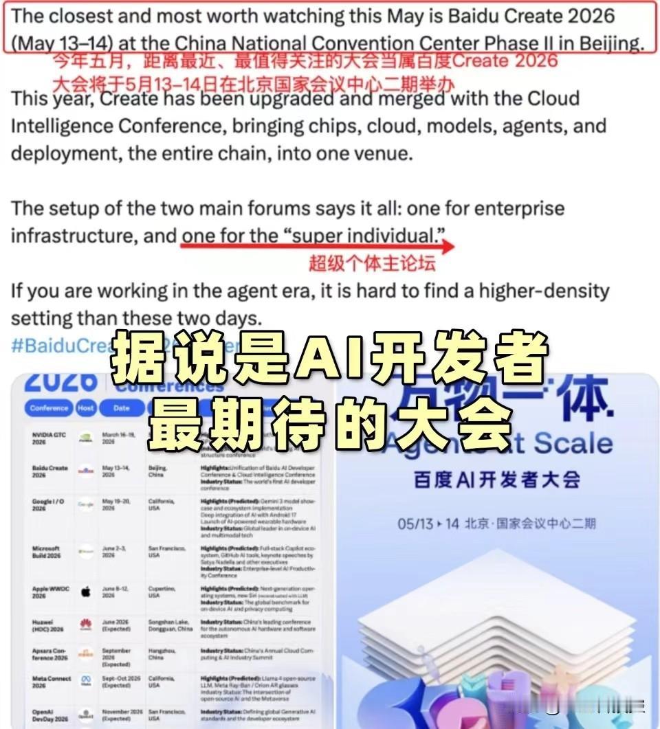 说实话,最近圈子里不少人在偷偷蹲一个大会——百度Create 2026。我也没忍住去扒了扒剧透,结果越看越后悔没早点报名。