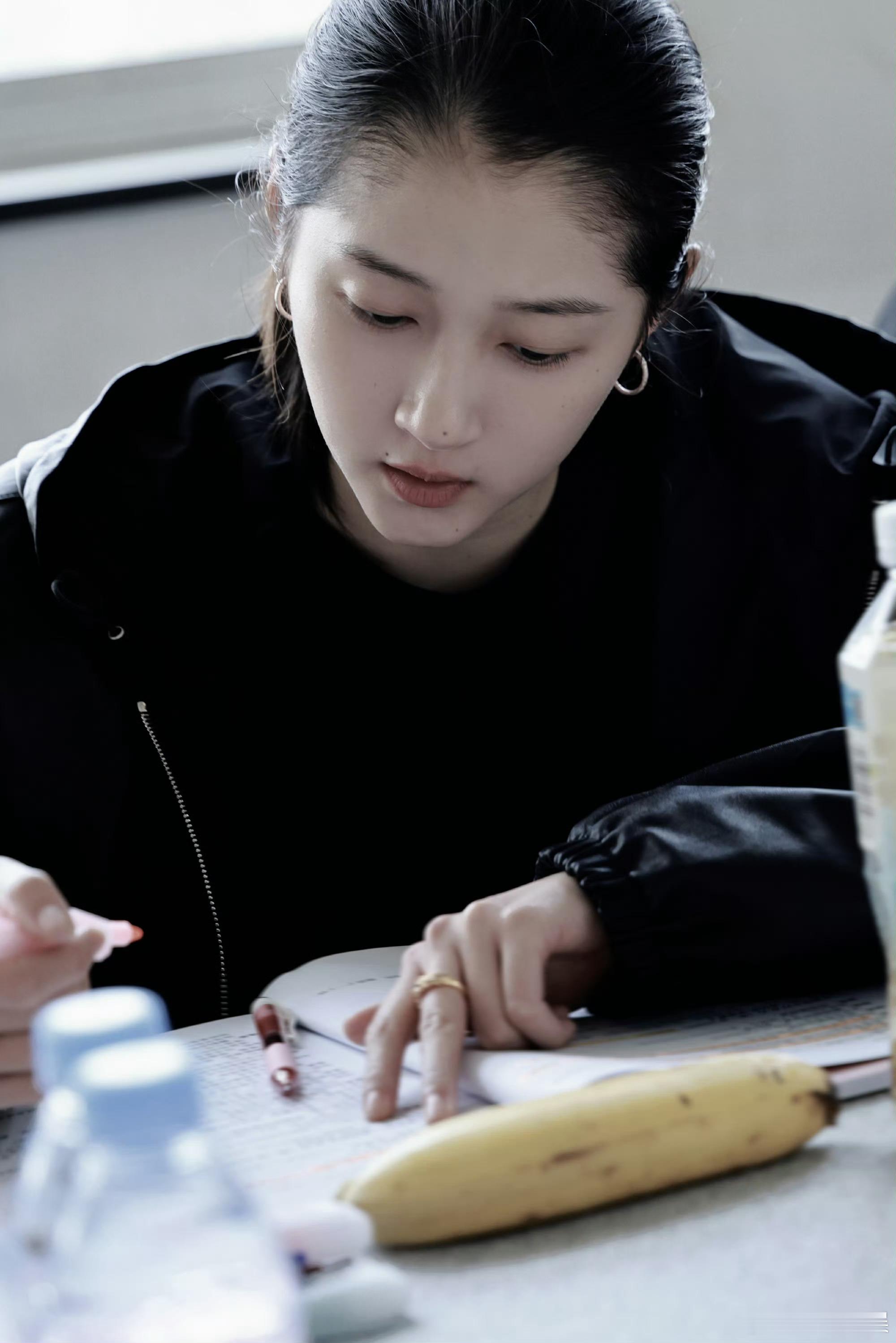 关晓彤贴头皮围读照关晓彤剧本围读ing 关晓彤贴头皮围读照,可以的