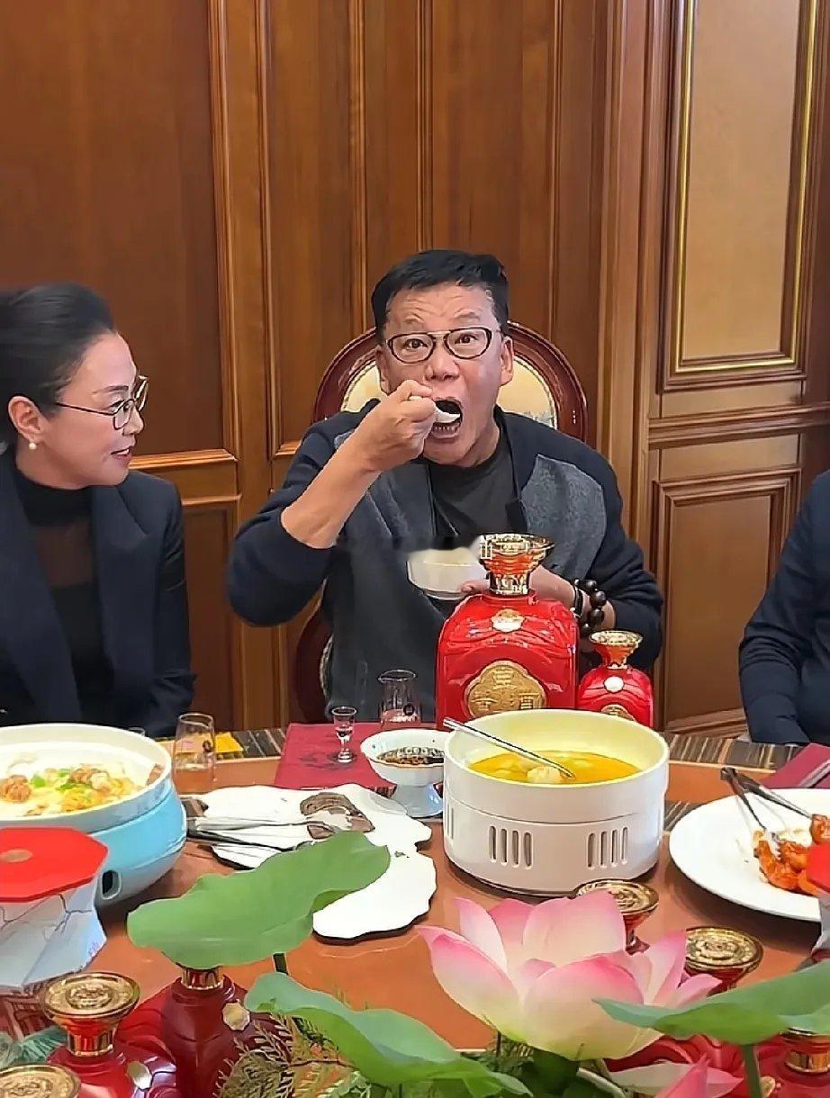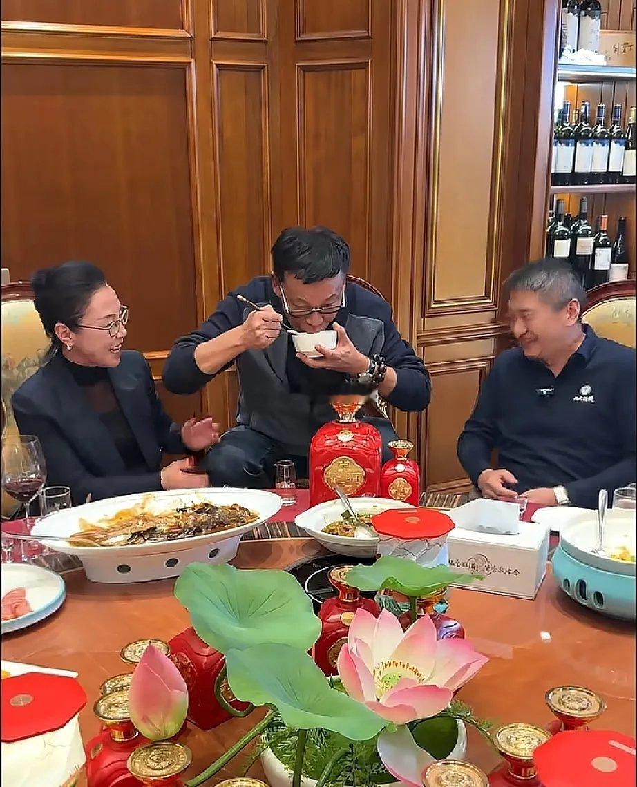 李国庆再婚后真是完全放飞自我了,在朋友聚会上直接双脚站在了椅子上,蹲着端碗吃饭,