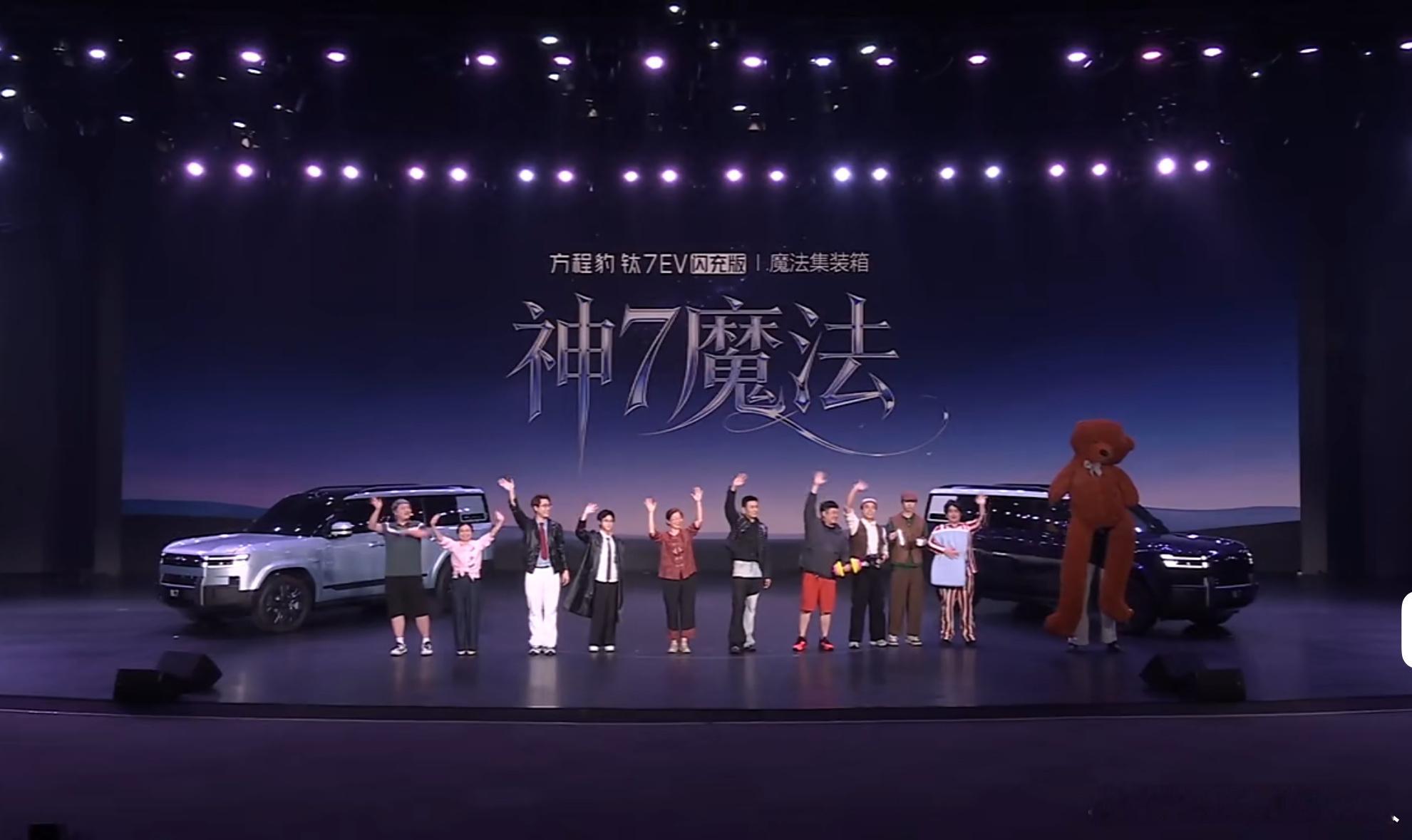 方程豹钛7EV闪充版居然能容纳这么多人??邓男子这个魔术给我看呆了看着一个一个从钛7走出来,而且还装下了一只这么大的的小熊,这空间真的大到恐怖了方程豹钛7ev闪充版上市发布会