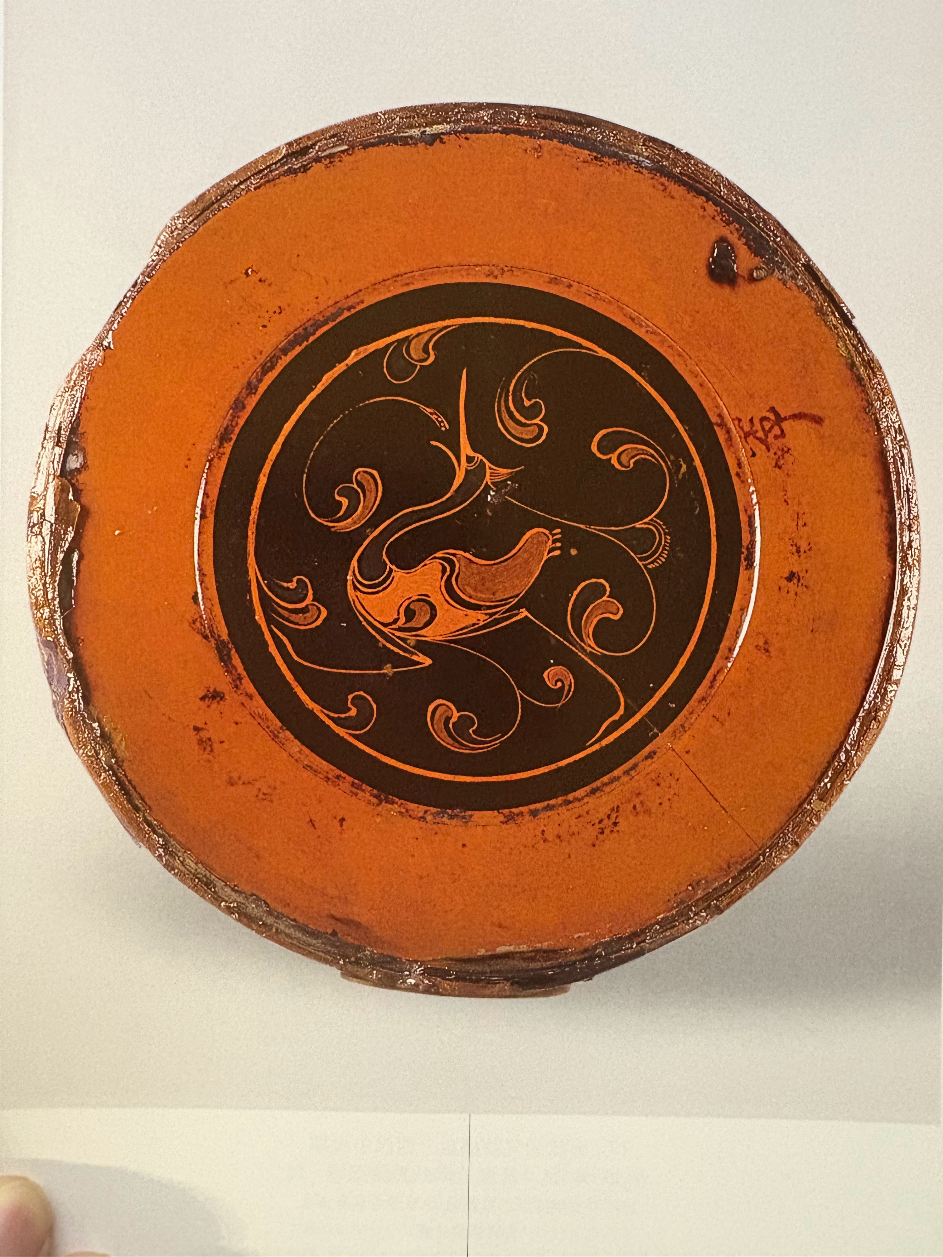 江苏扬州市博物馆藏1998年邗江西湖山头M2出土西汉:彩绘云气几何纹漆奁,盖和底