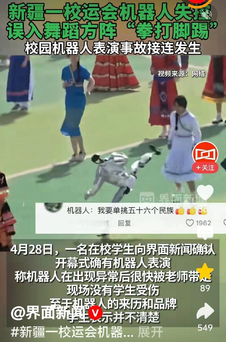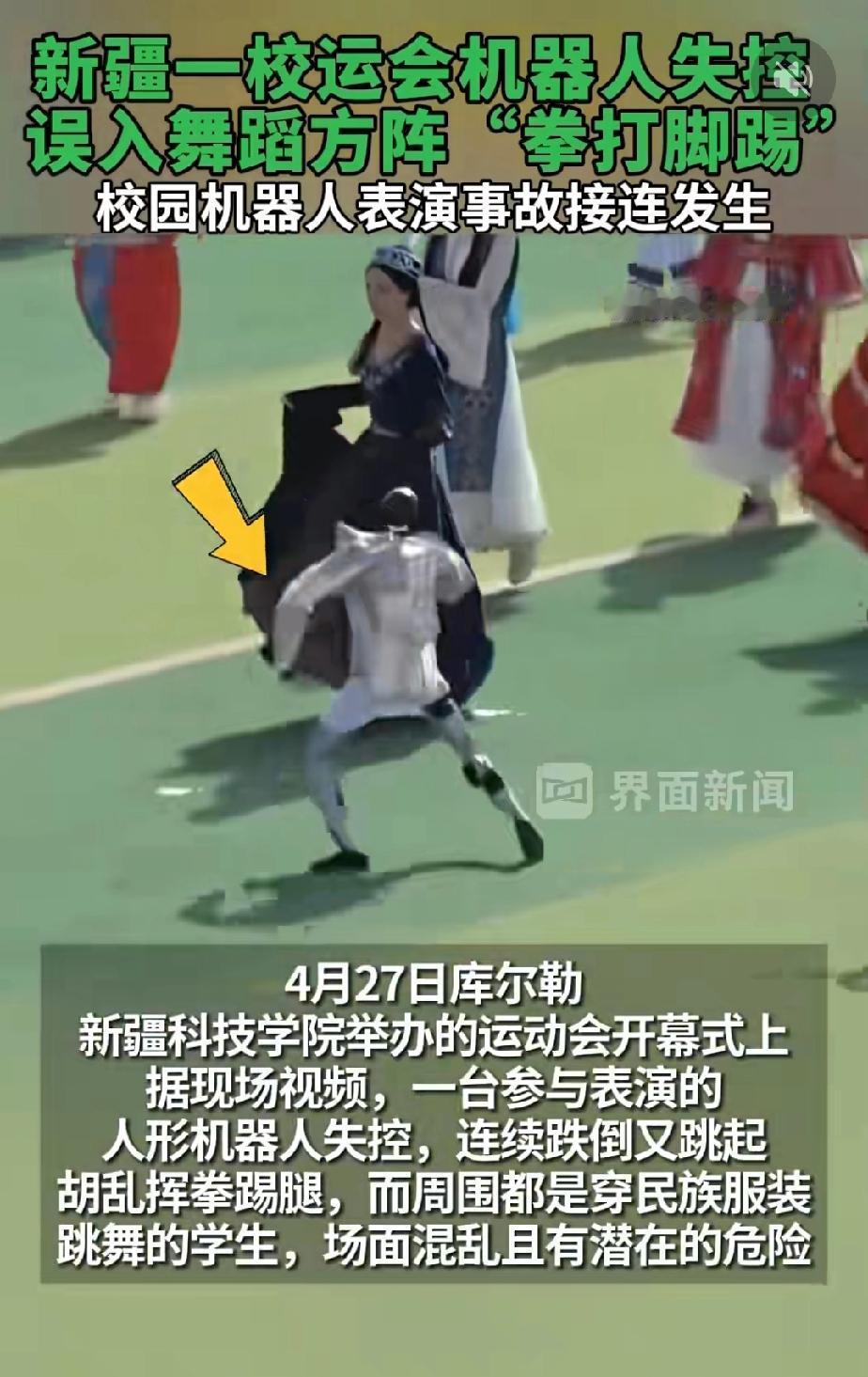 机器人这是疯了,还是意识觉醒? 4月27日,新疆一科技学院运动会上,一人形机器