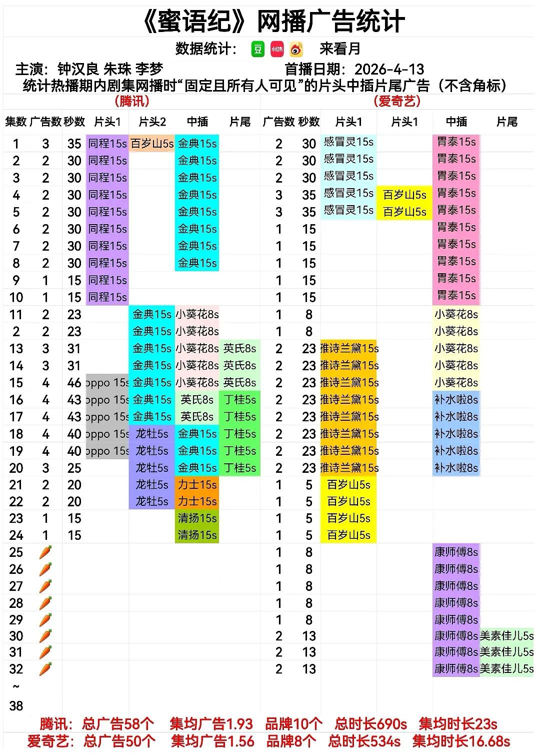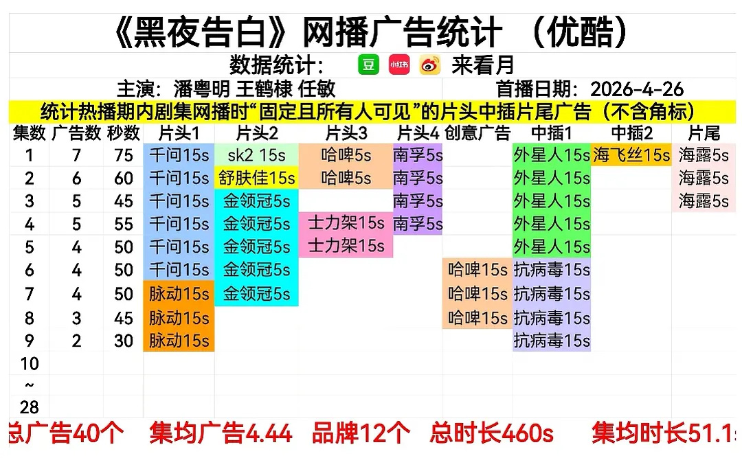 4月29日 在播剧广告:《黑夜告白》和《爱情没有神话》2广,《蜜语纪》1台🥕,