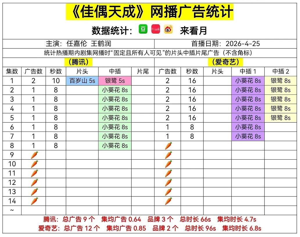 4月29日 在播剧广告:《黑夜告白》和《爱情没有神话》2广,《蜜语纪》1台🥕,1台2广,《佳偶天成》双台🥕