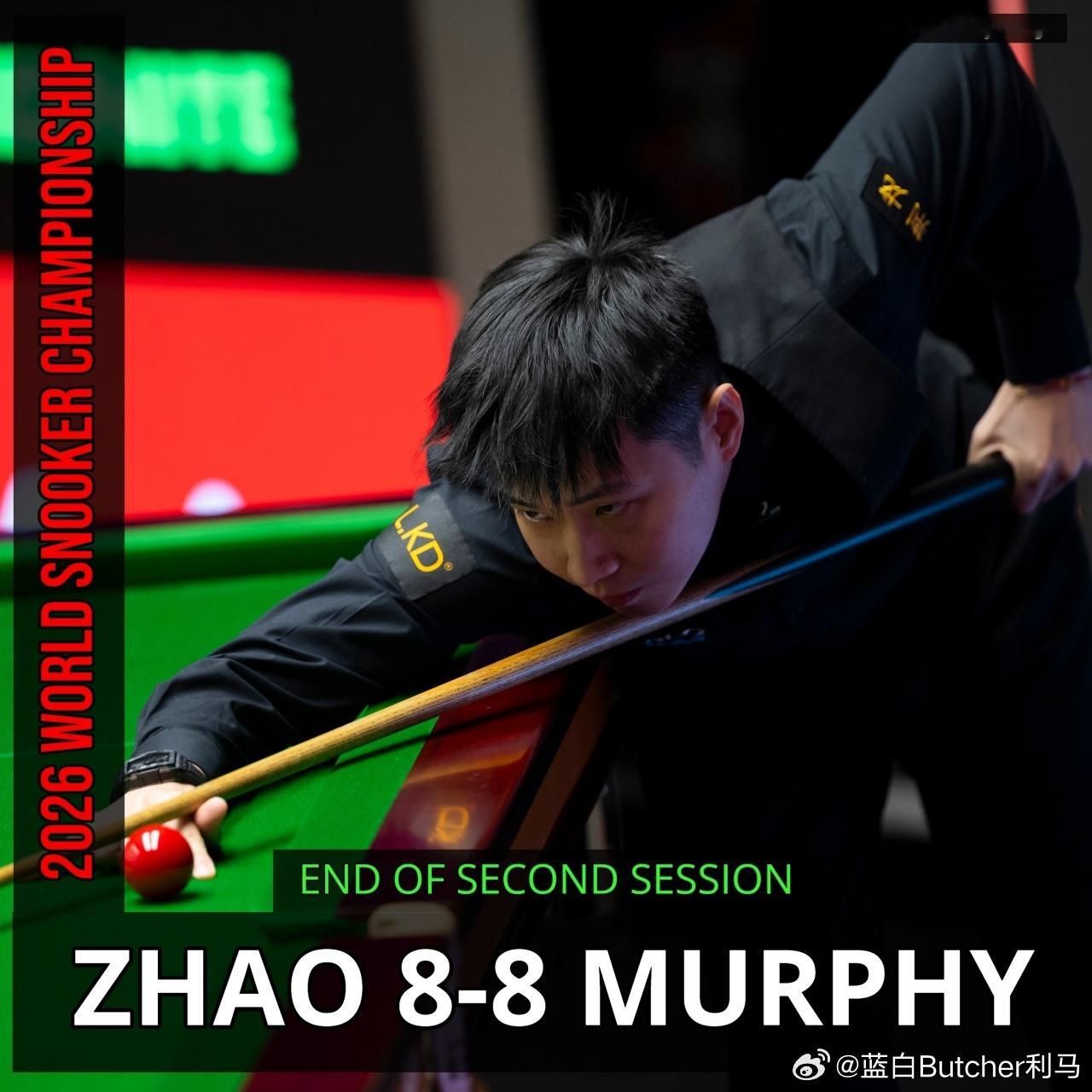 斯诺克世锦赛1/4决赛采用25局13胜制(8/8/9),在与墨菲的比赛中,赵心童第一阶段轰单杆破百取得3-0开局但随后遭五连鞭,第二阶段再轰单杆破百扳平总比分,前2个阶段双方战至8-8平,第三阶段9局5胜。