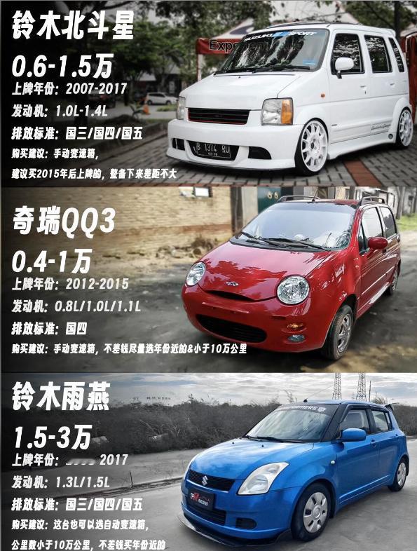 ✨ 铃木雨燕:运动感小钢炮!颜值耐看,操控灵活,开起来很轻快,而且改装潜力大,女生稍微改一改,就能开出专属个性,关键是耐造不娇气,后期养车成本超低。