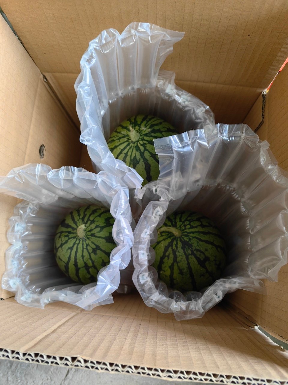 这个好物闭眼入 小个头得西瓜, 不用担心一次吃不完皮薄红心脆甜的,这个瓜的瓜皮相对比较薄,果肉脆甜,全部现摘现发,气泡柱加固包装,5斤约2-3个,小巧可爱,多汁解渴,是这个夏天最好的搭子~