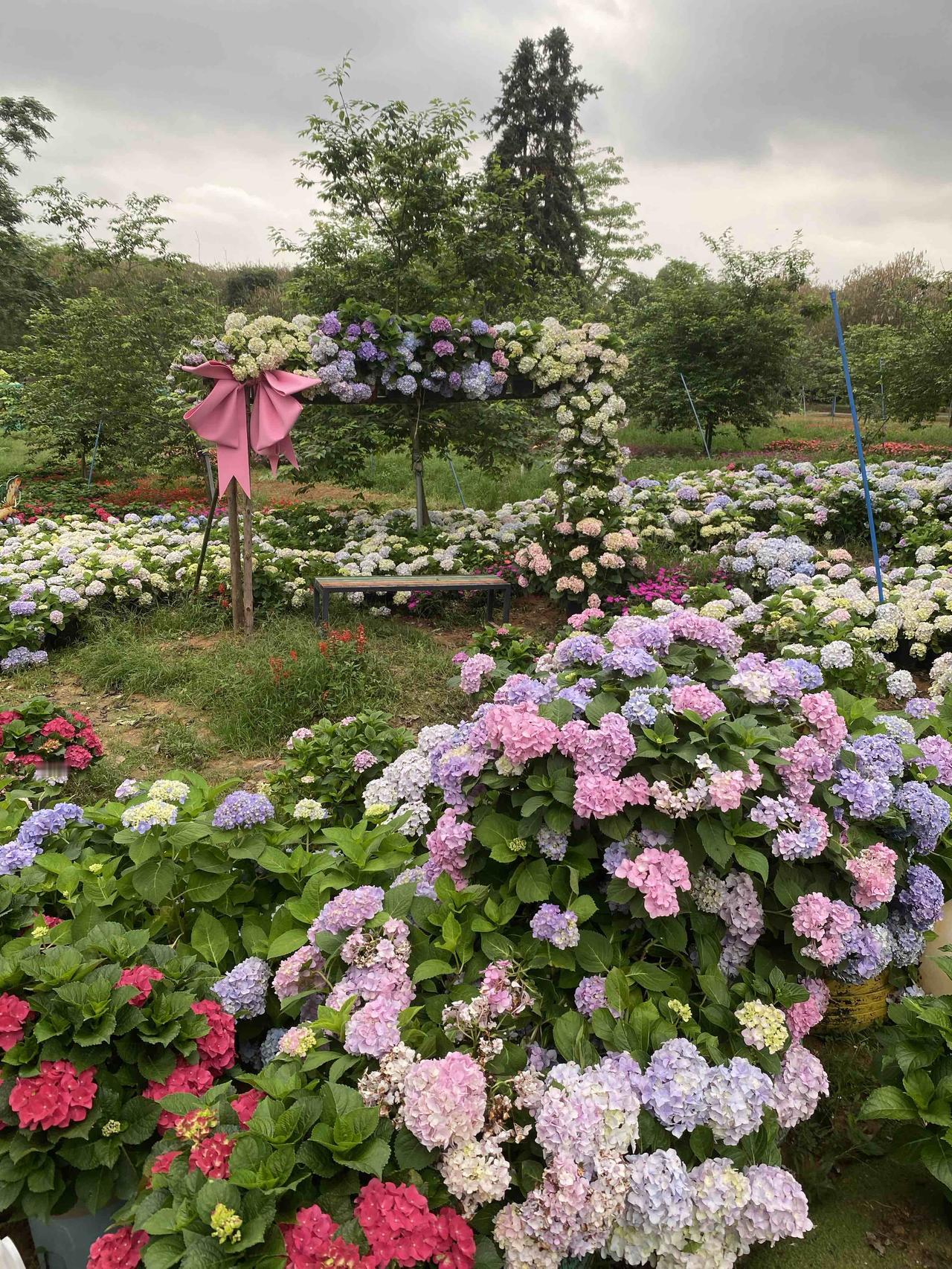 给大家提个醒:上午光线柔和,拍绣球花自带滤镜感;园区里有小吃和休息区,也可以自带野餐垫,在花树下吃点零食,氛围感直接拉满。
