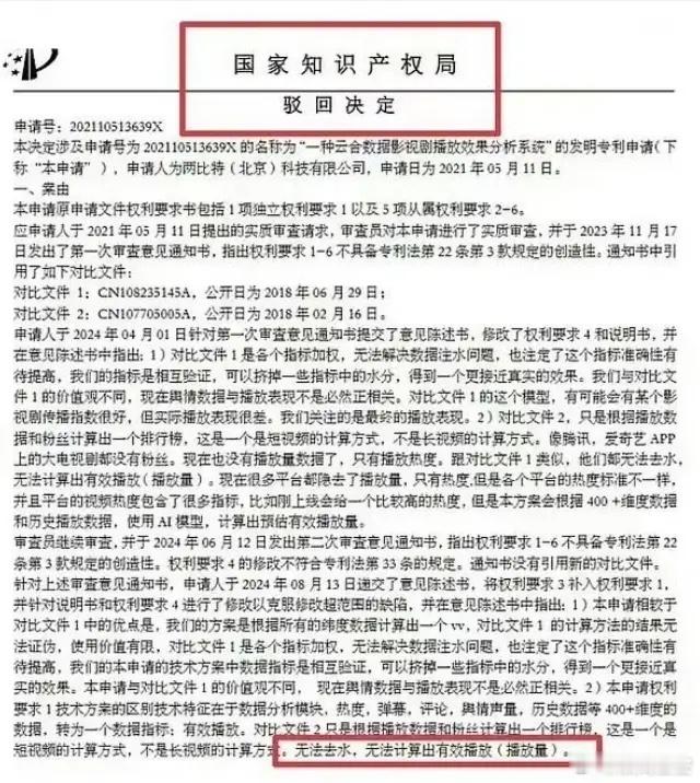 云合被废了!云合申请专利被国家知识产权局驳回,官方认定其算法无法计算有效播放量且无法“脱水”,也就是无法剔除异常流量,云合原本就是抓取其他平台的数据生成的预估播放量,无法剔除片方或者其他方买水情况,所以不具备专利性,但是就目前来看,内娱依旧没有能取代云合大数据结算平台,目前各数据平台给出的数据都做不到透明化计算,广电完全可以推一款权威的数据平台出来。