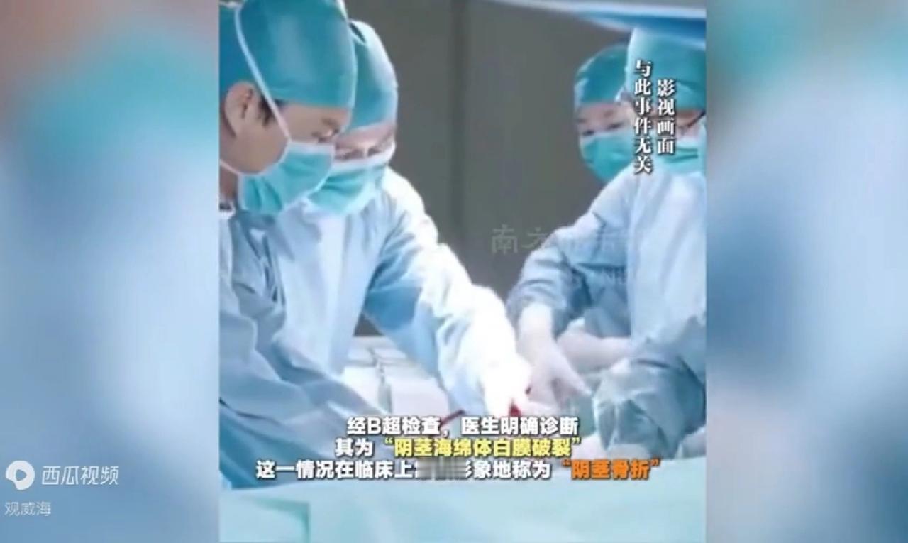 医生解释,阴茎里没有骨头,所谓“骨折”,其实是勃起时,包裹海绵体的白膜被撑得很薄,受到外力掰扯后破裂。