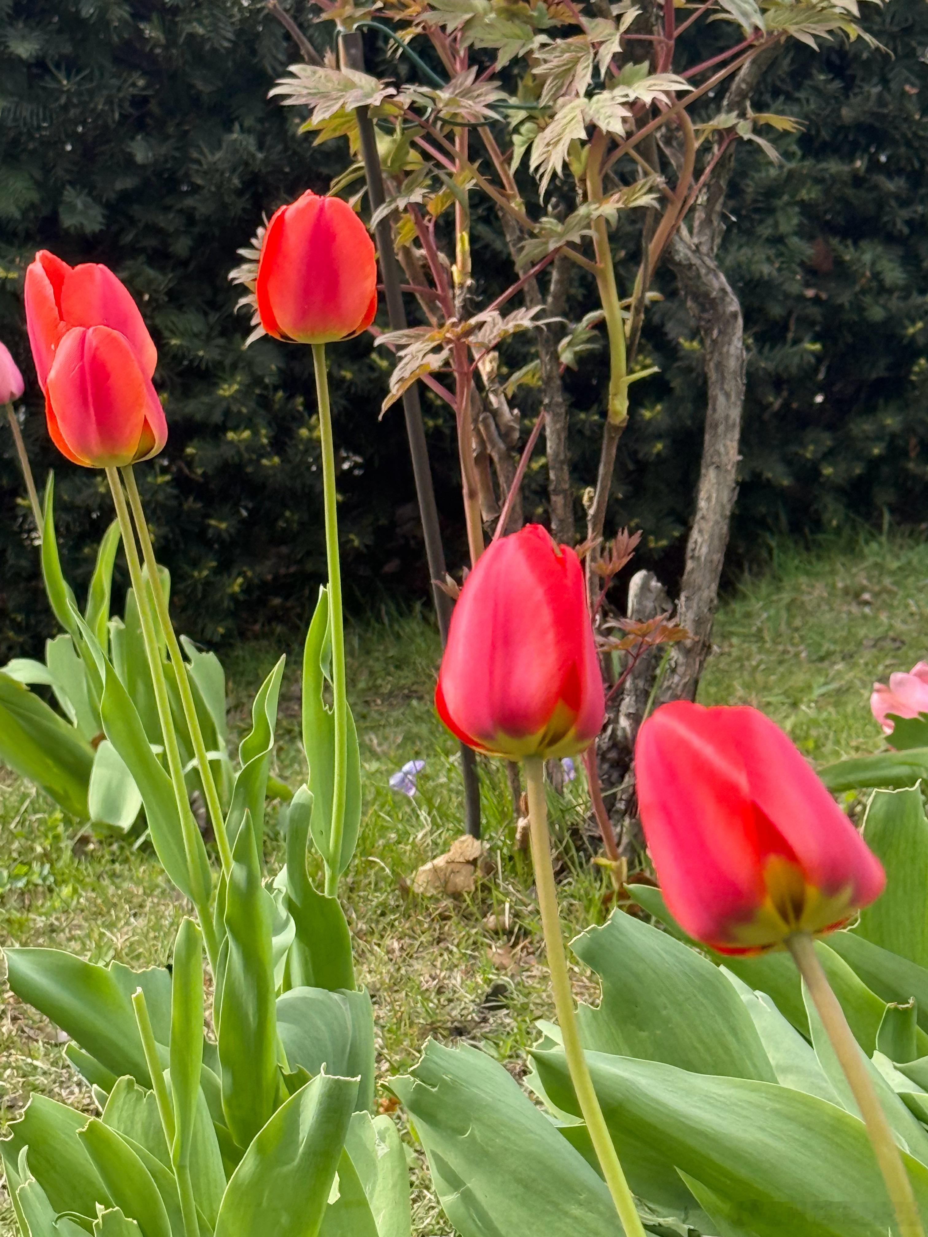 院子里的郁金香一年比一年稀少,今年有一大半没有抽花苞。