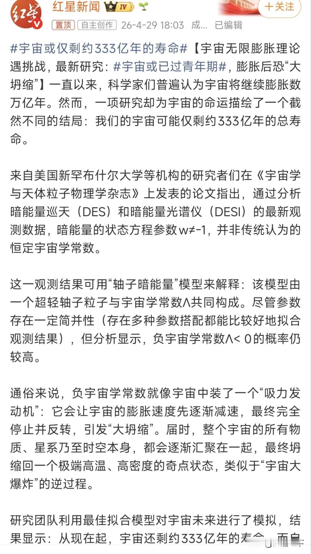 吓我一跳我以为还剩333天呢!要是宇宙真只剩333天,怕是不少人都要拍手称快了[吐舌]。如果是剩 333 天估计不会通知我们[吐舌]。