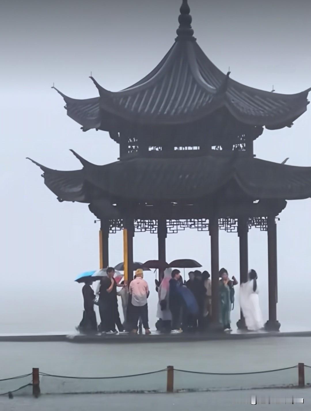 昨天4月29日西湖一整天的中到大雨,雨天的西湖之美在于‌水墨意境与空灵诗意‌,正