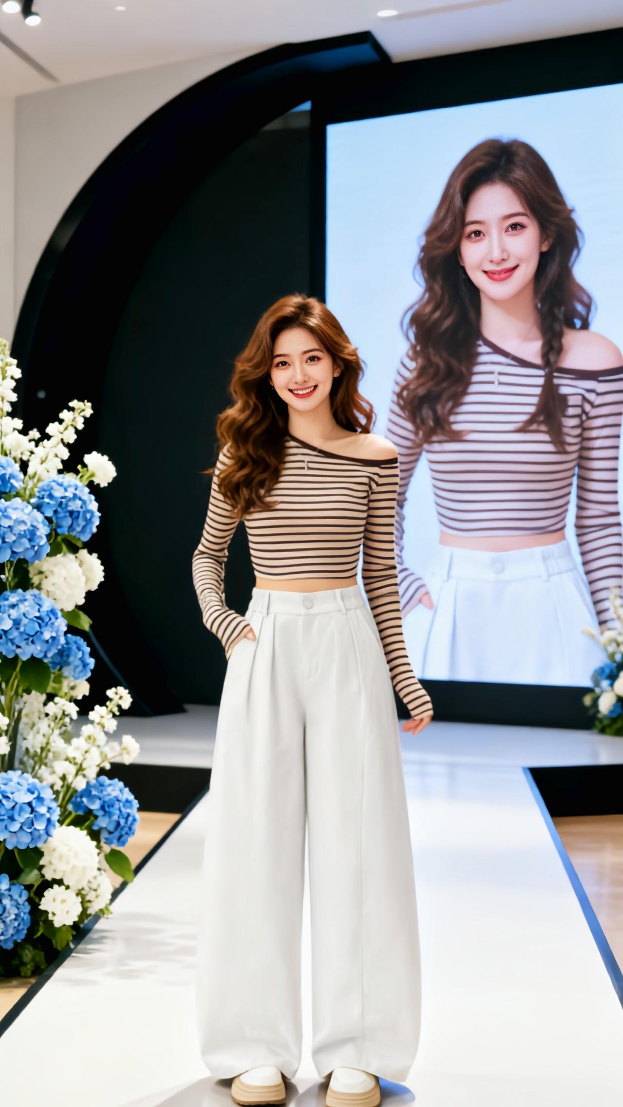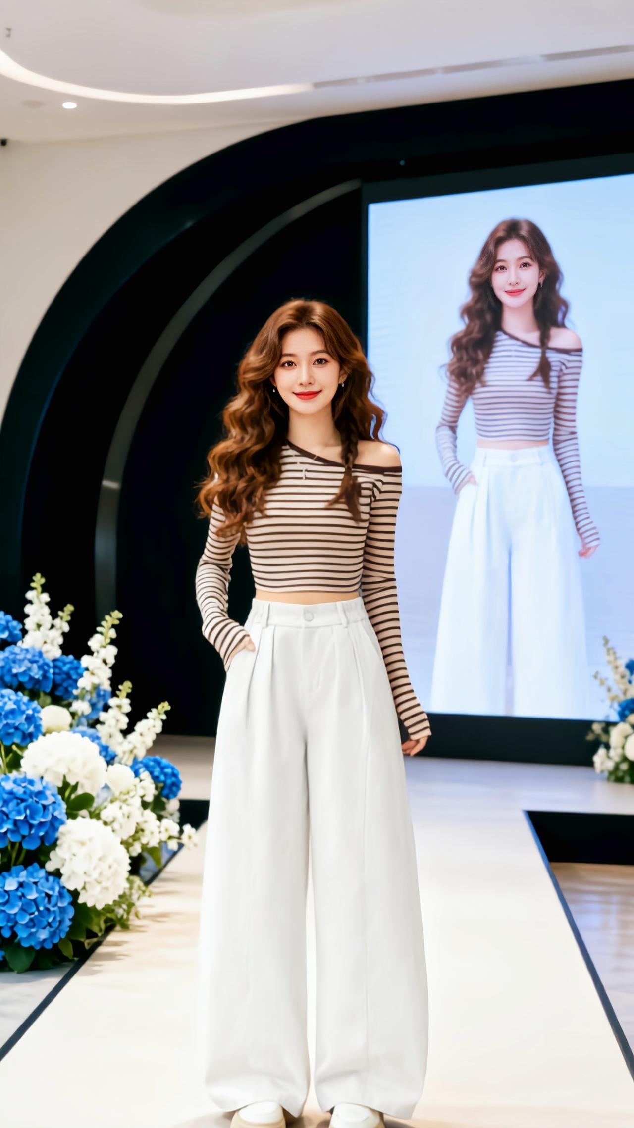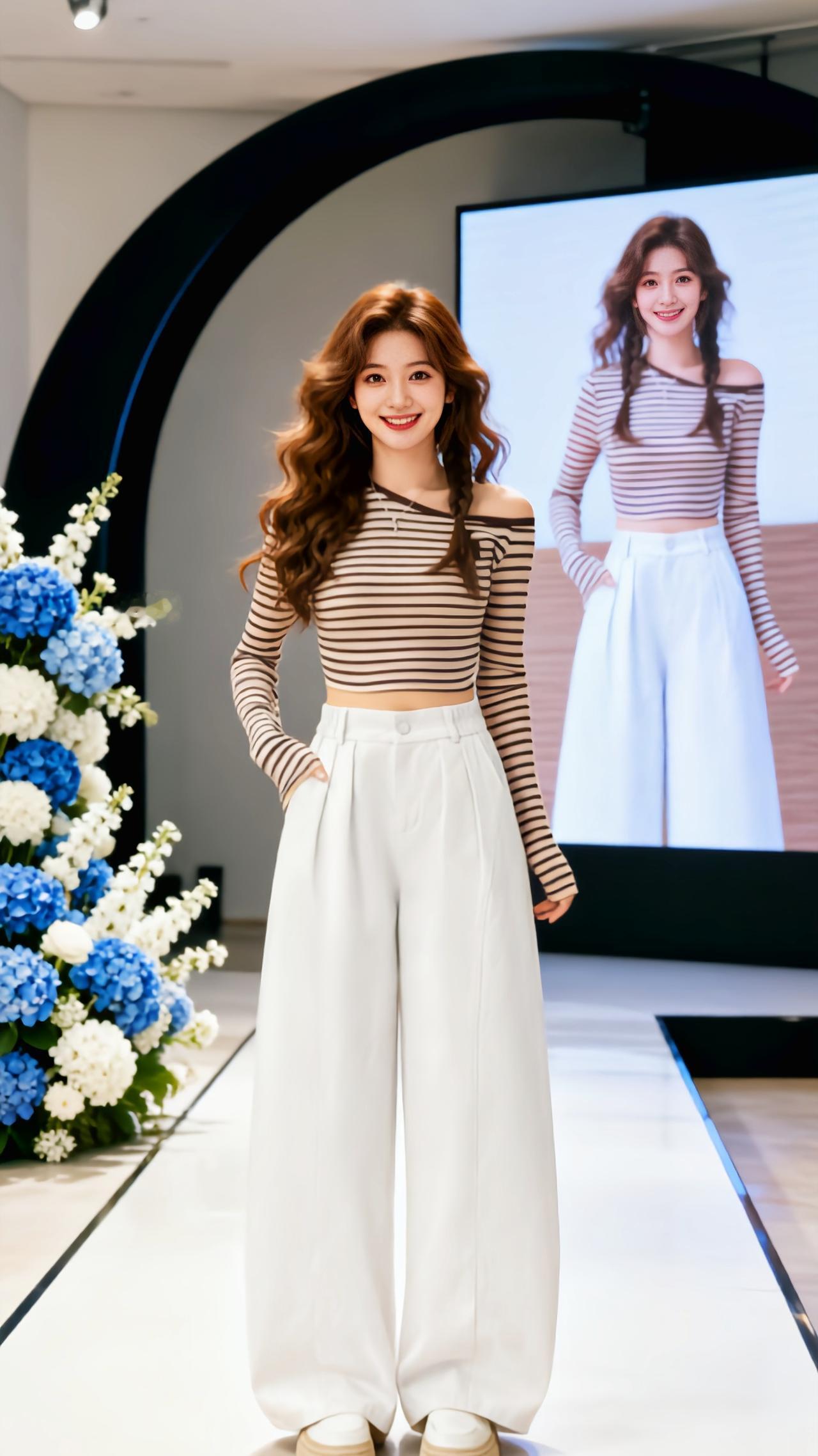 套装日上新 横纹阔腿裤女 直筒显瘦秀场同款长裤 穿搭 新款