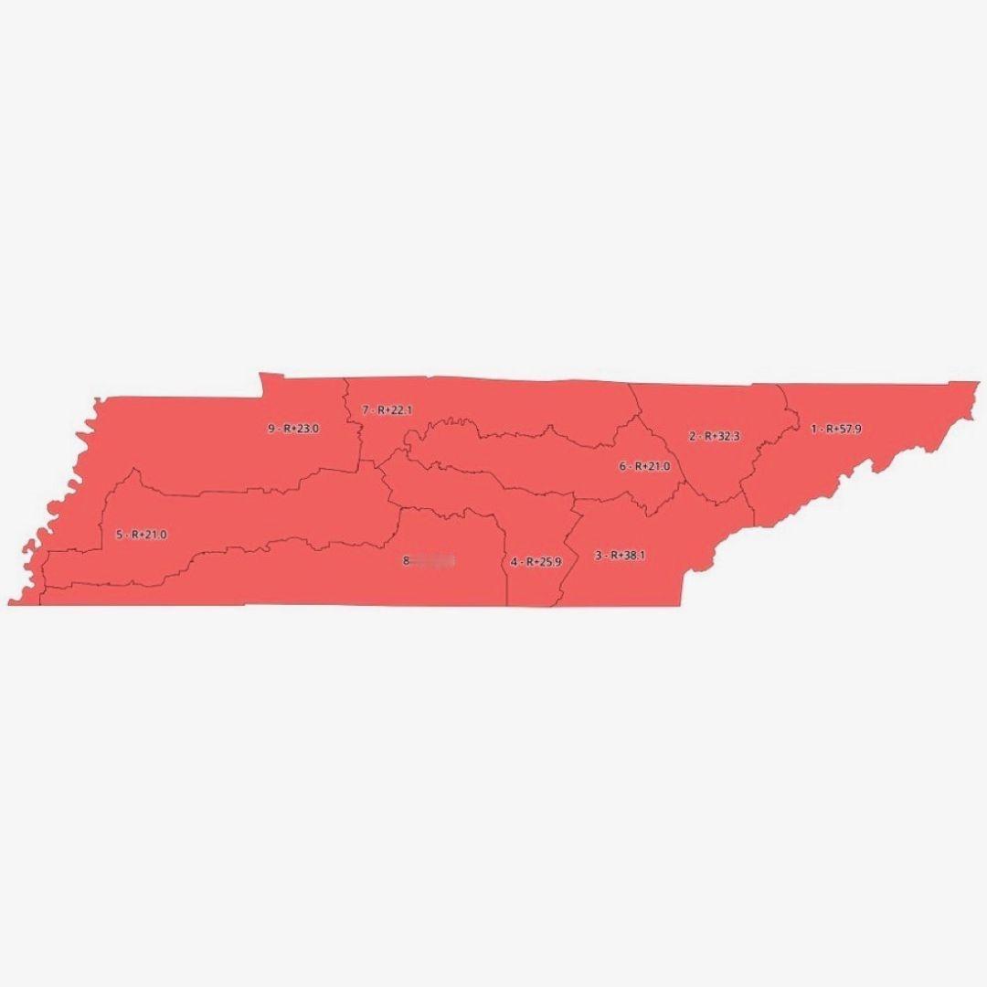 美国田纳西州州长共和党候选人玛莎·布莱克本威胁要通过一份选区划分操纵地图,这将使田纳西州完全变成红色州。