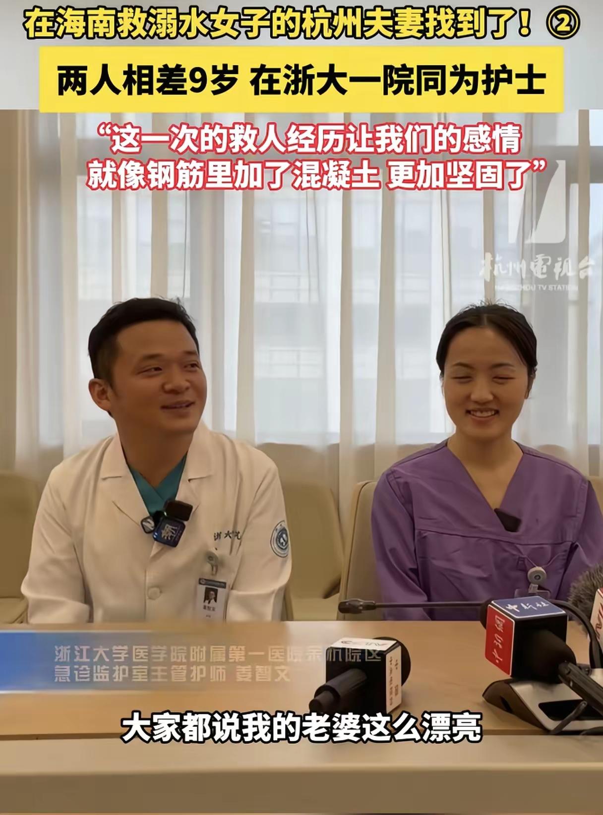 这一幕,让无数网友直呼“嗑到了”。这对相差9岁的夫妻,不只是浙大一院的同事,更是海南万宁沙滩上,用教科书式操作救回溺水女子的“生死搭档”。