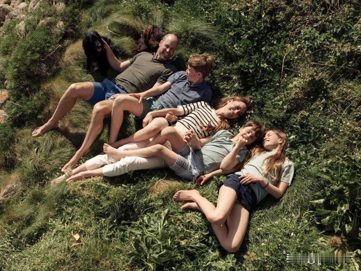 凯特躺在中间,侧着头看着路易斯王子和夏洛特公主,母爱十足。路易斯王子头靠着姐姐夏洛特,还把腿搭在妈妈身上,还是之前调皮的感觉。夏洛特公主在外侧,笑的很甜蜜。