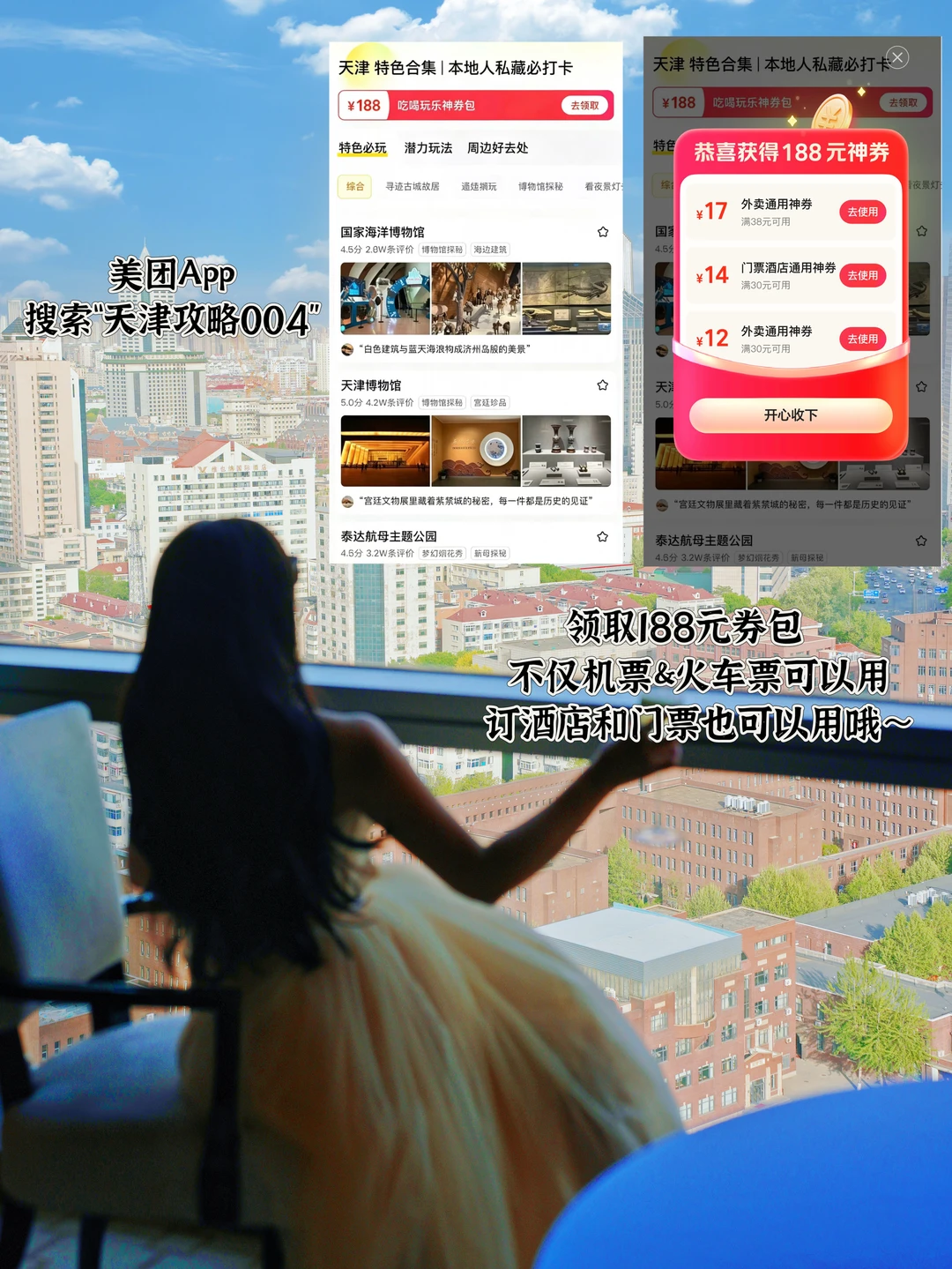②打开美团APP🔍"天津攻略004"即可领取券包哦❗️(最终券包金额以活动页为准)