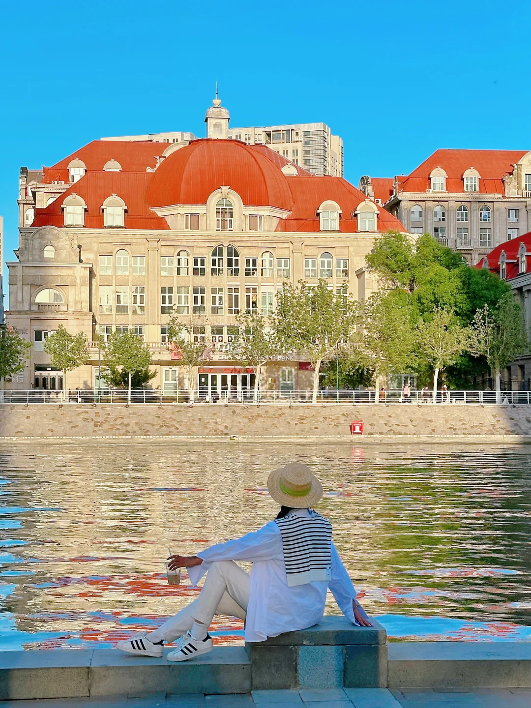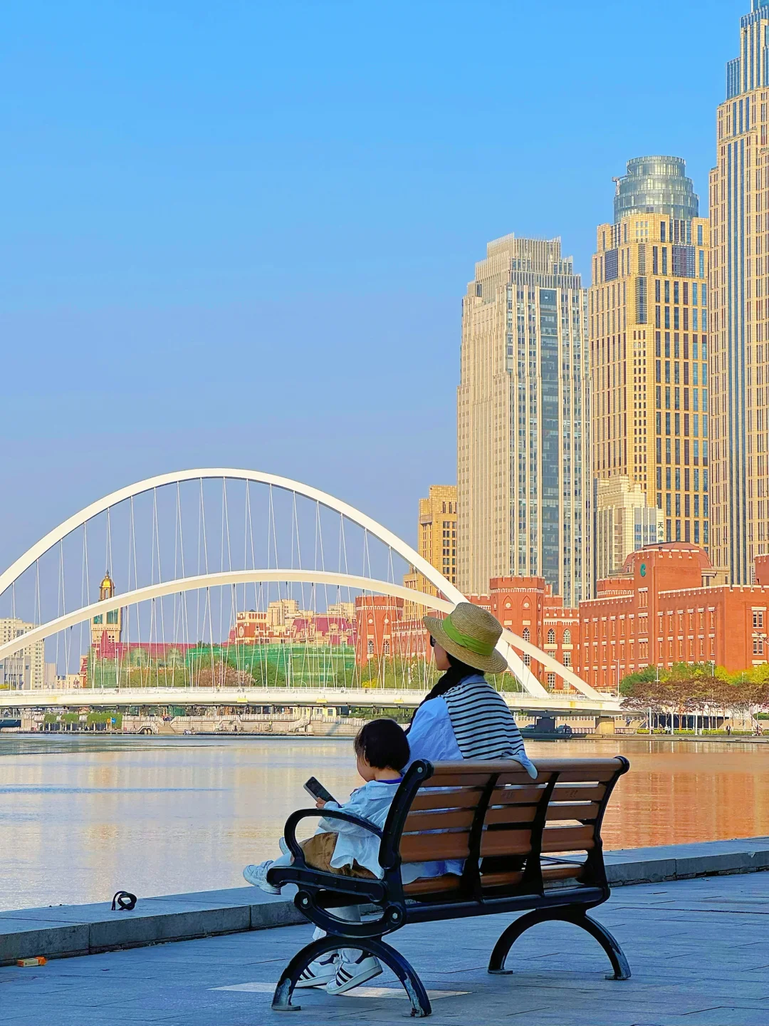 ✅大沽桥:定位“天津瑞吉酒店”,河边第二个长椅拍照好看