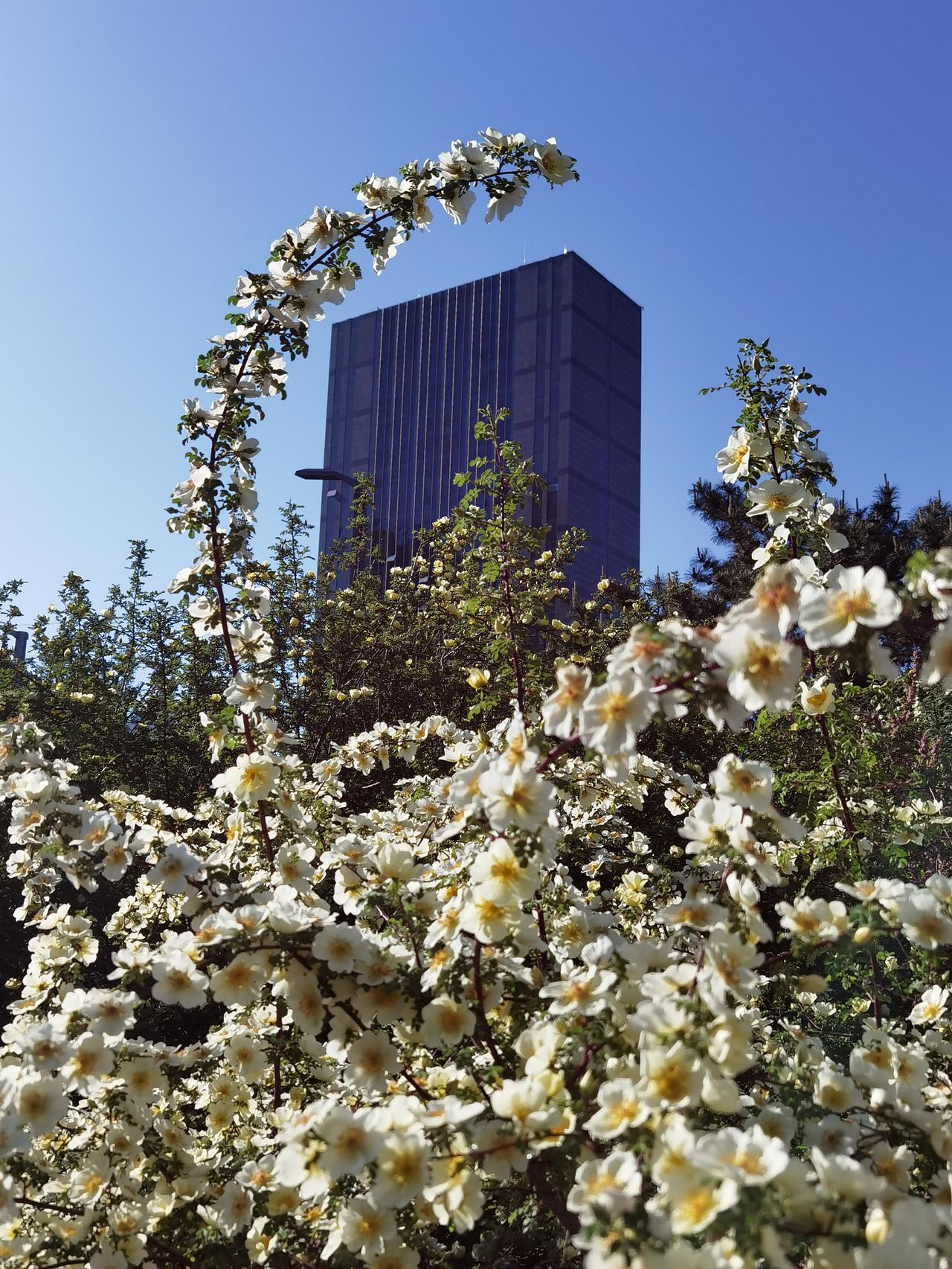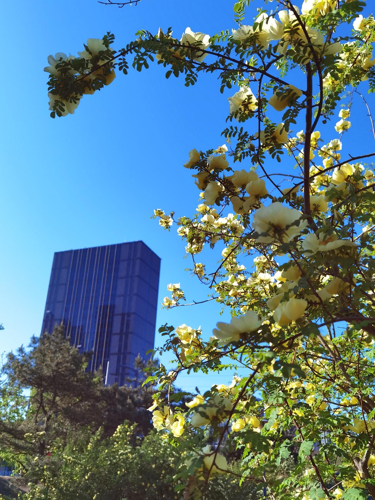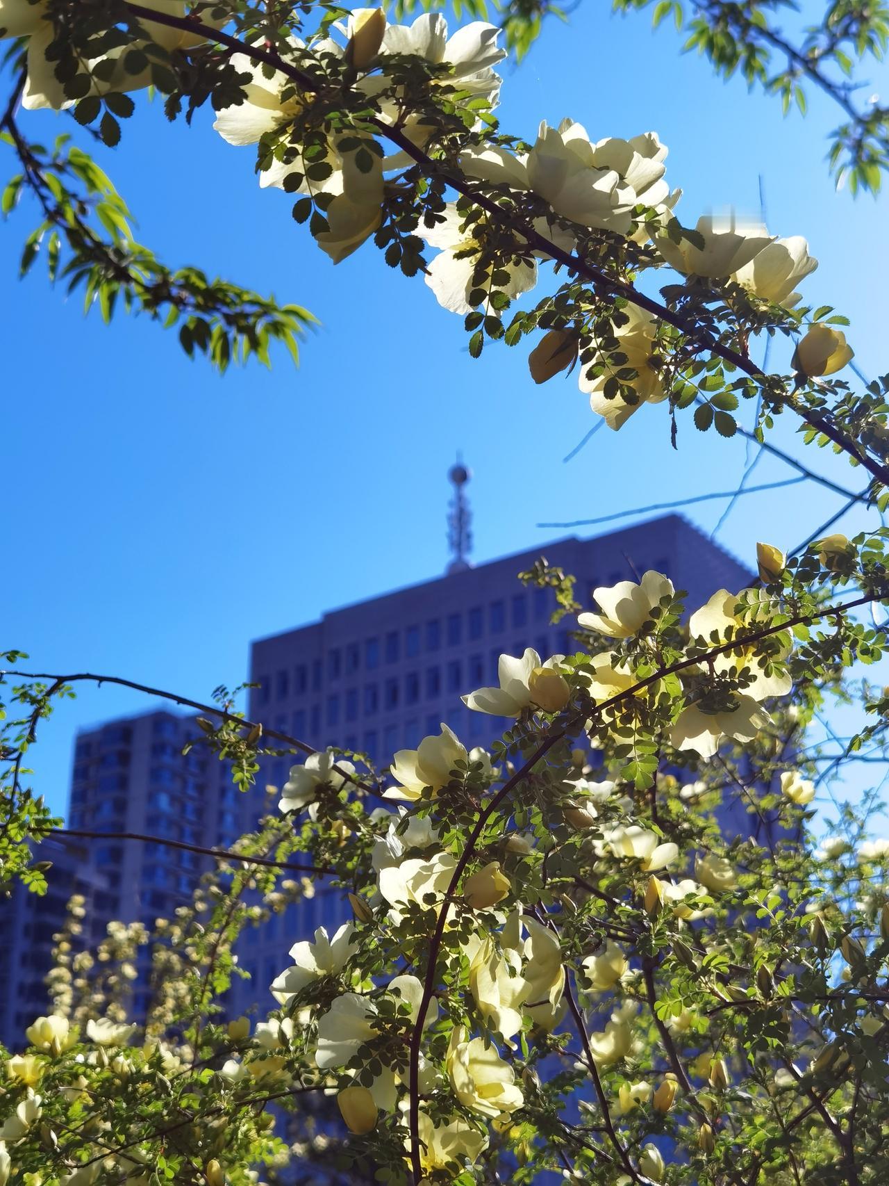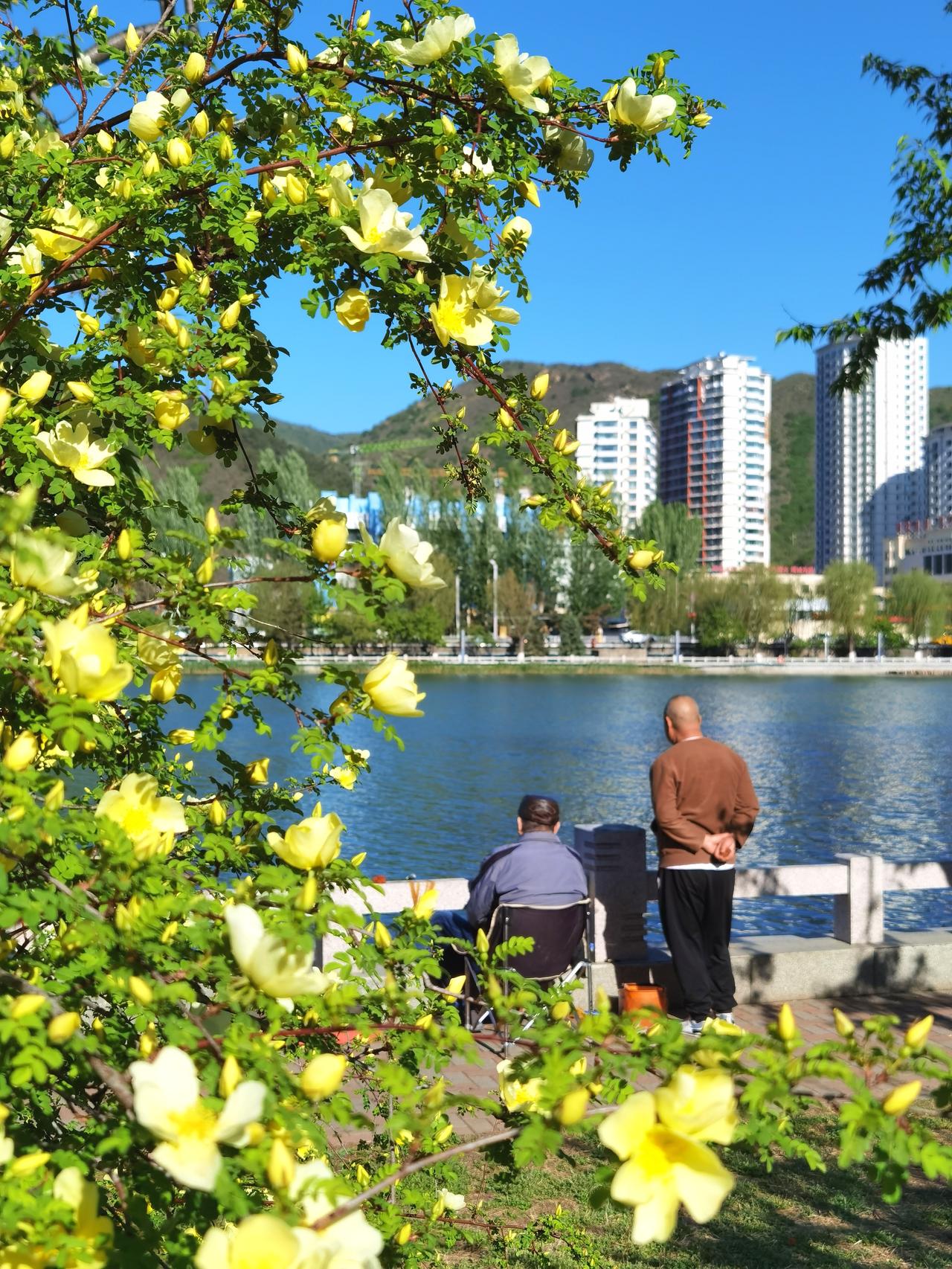 承德武烈河畔是欣赏春花的好地方。从三月底的杏花开始,陆陆续续的迎春、山桃、榆叶梅、梨花、海棠等竞相开放,临近五一,春花也接近尾声了。不过,这几天黄刺玫正在盛开,迎宾路规划展览馆对面的武烈河畔的十几株正在开花,这可能真的是最后一波春花了。