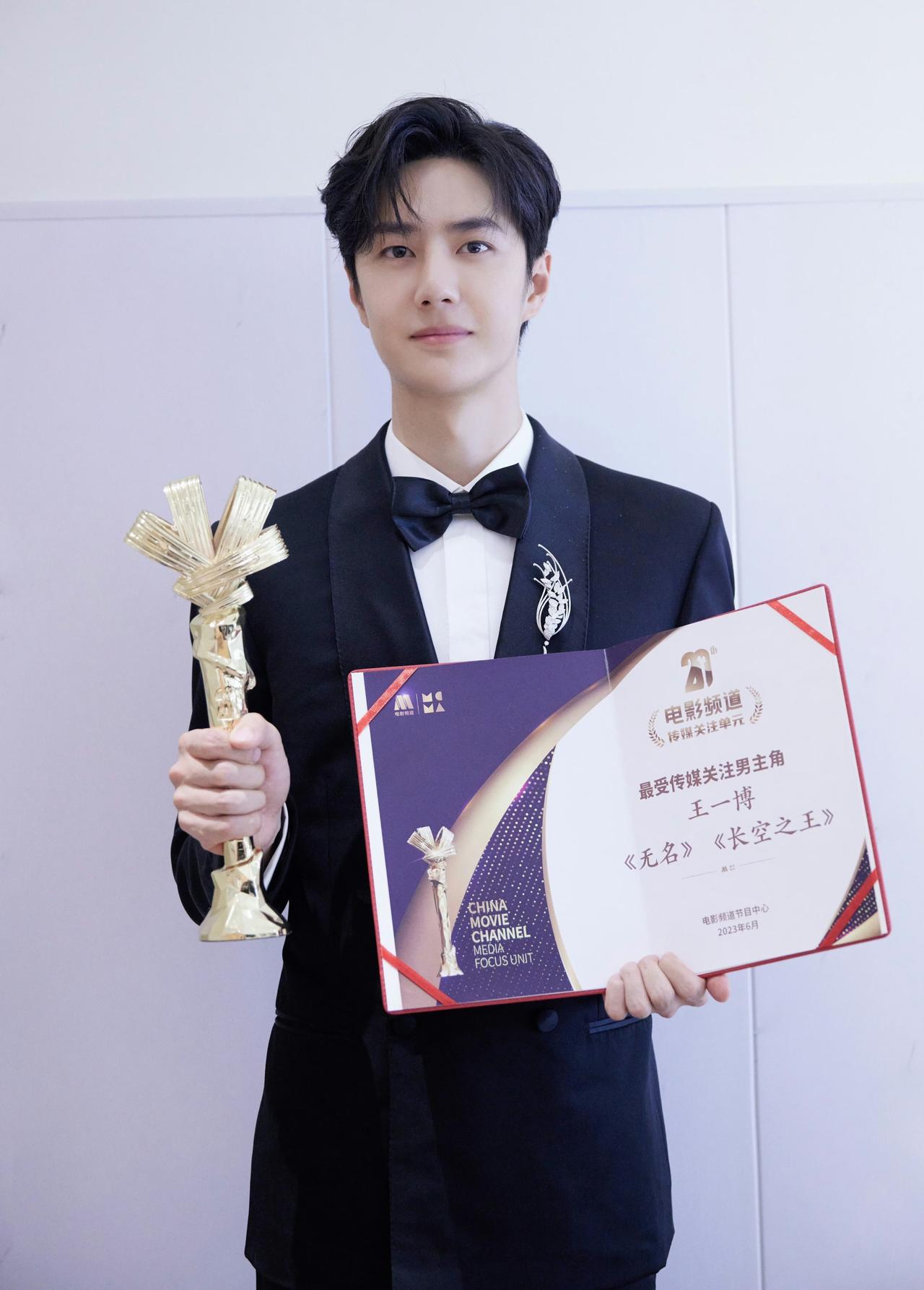 2023年王一博凭借《无名》《长空之王》获第20届电影频道传媒大奖最受传媒关注男主角。