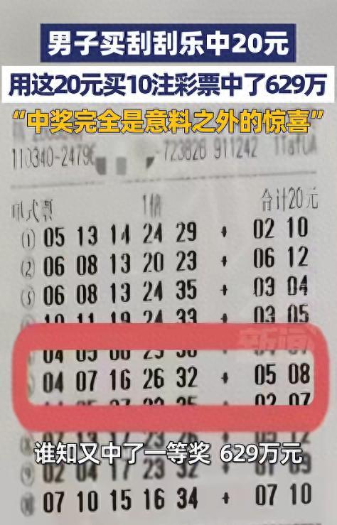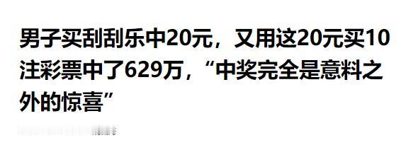 信源:男子买刮刮乐中20元,又用这20元买10注彩票中了629万,“中奖完全是意料之外的惊喜”