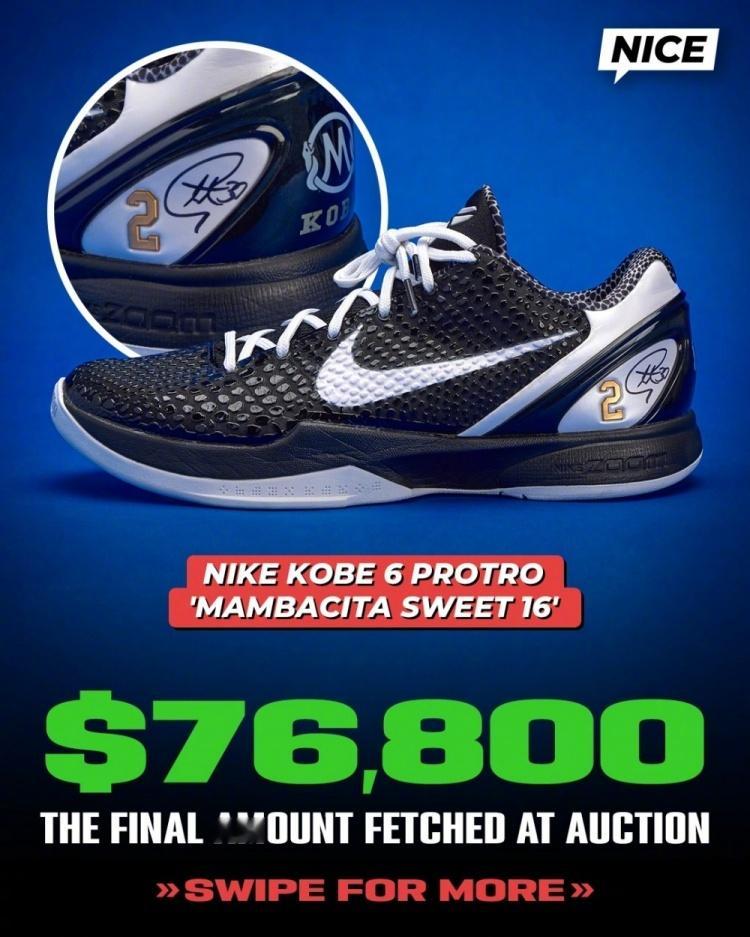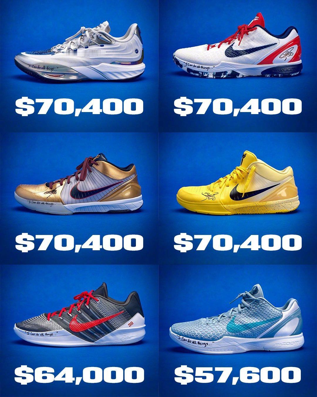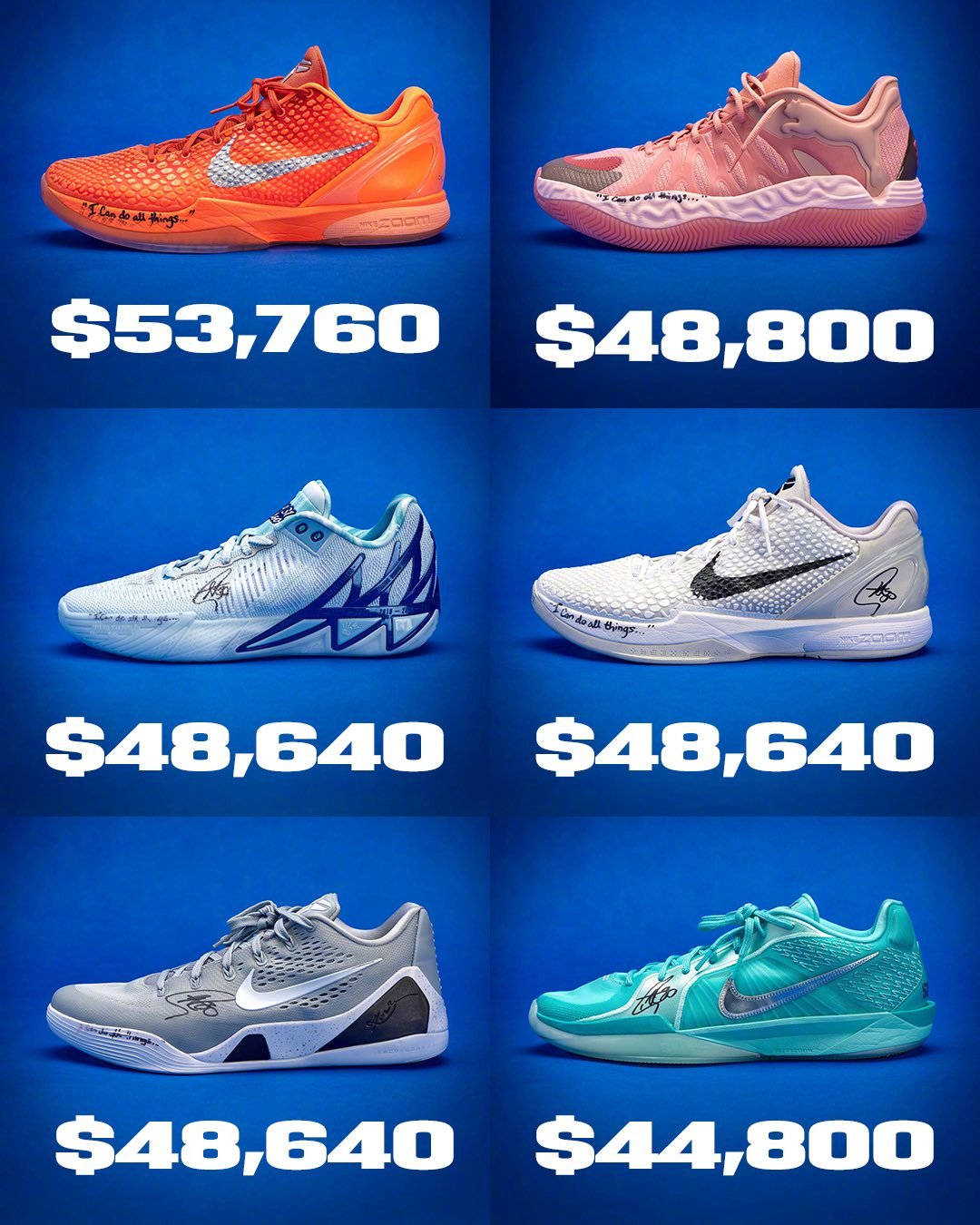 TOP3:1. Hyperdunk 2010「圣诞」PE:121,600美元(圣诞大战热身上脚); 2. Kobe 6 Protro「Mambacita」:76,800美元(离开安德玛后首场上脚);