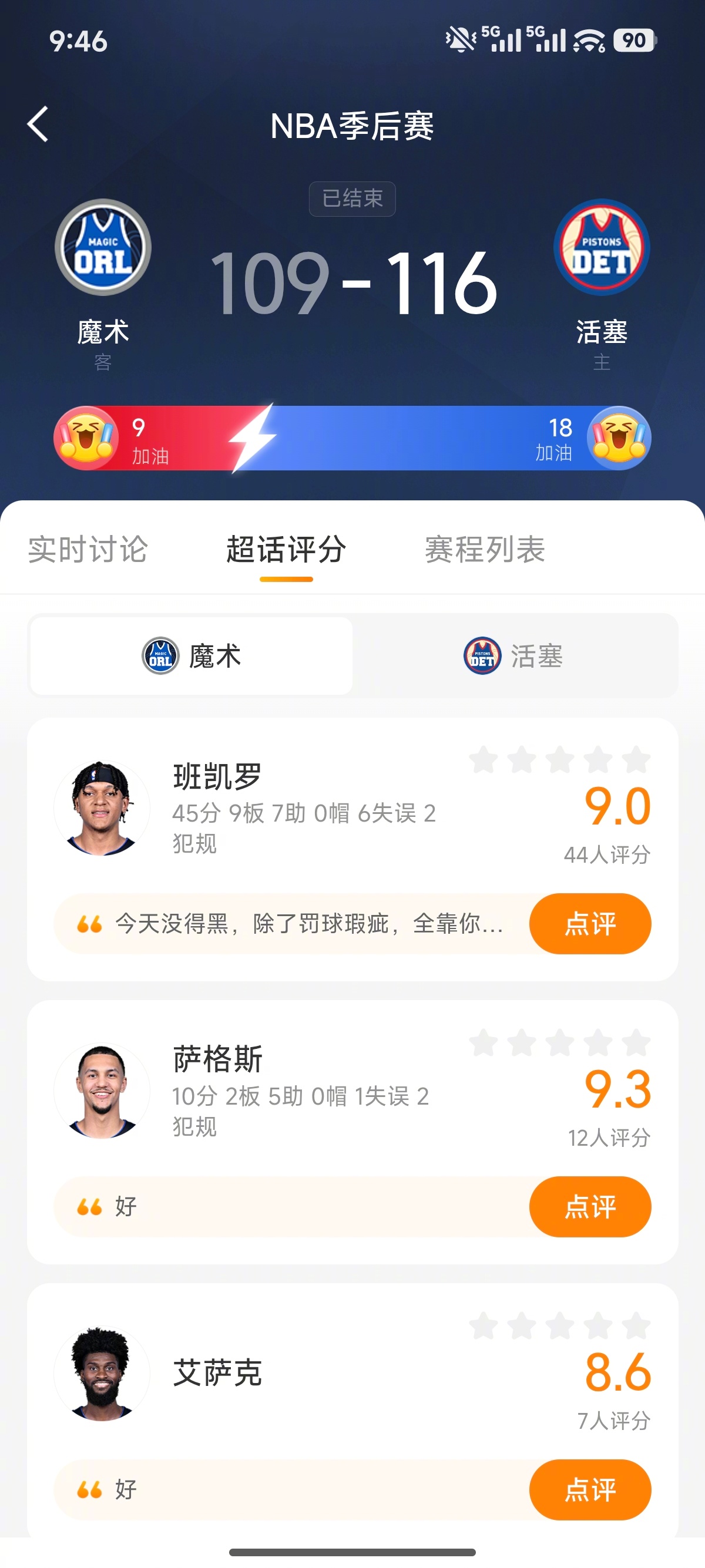 魔术方面班凯罗空砍45分9篮板7助攻,贝恩18分、布莱克19分。班凯罗空砍45分nba季后赛全民点评家 更多详情戳>>网页链接