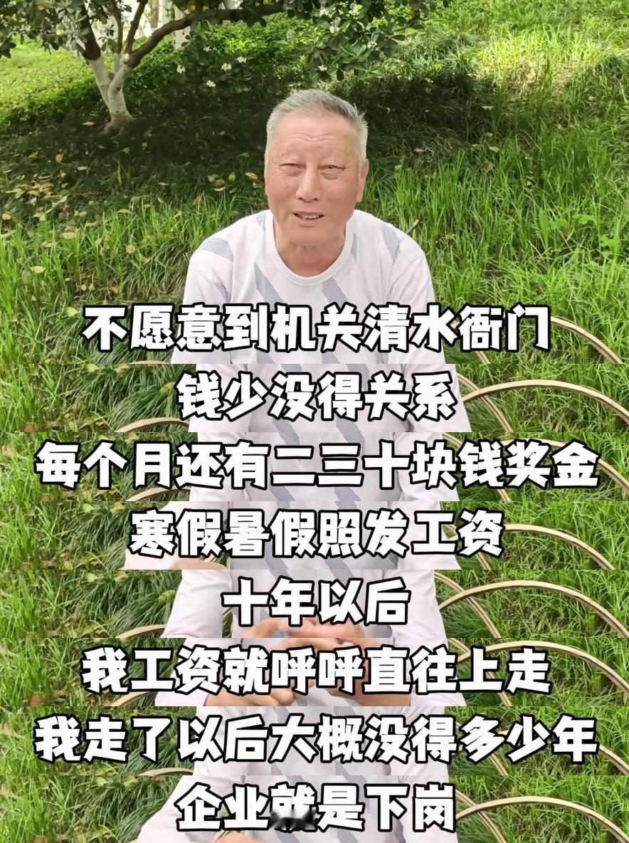 十年过后,他的待遇便一路稳步上涨,而当年的工厂,自他调离2年后,便开始走下坡路,后来直接倒闭。