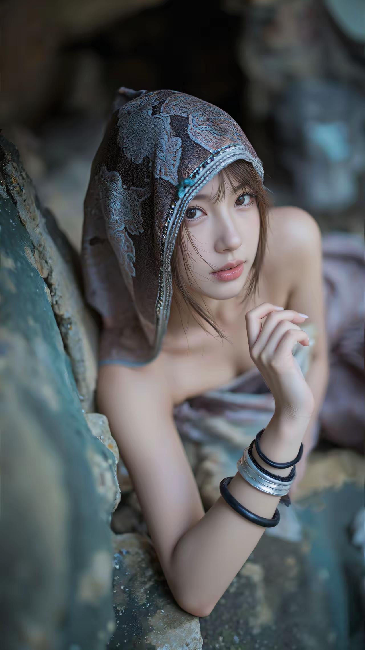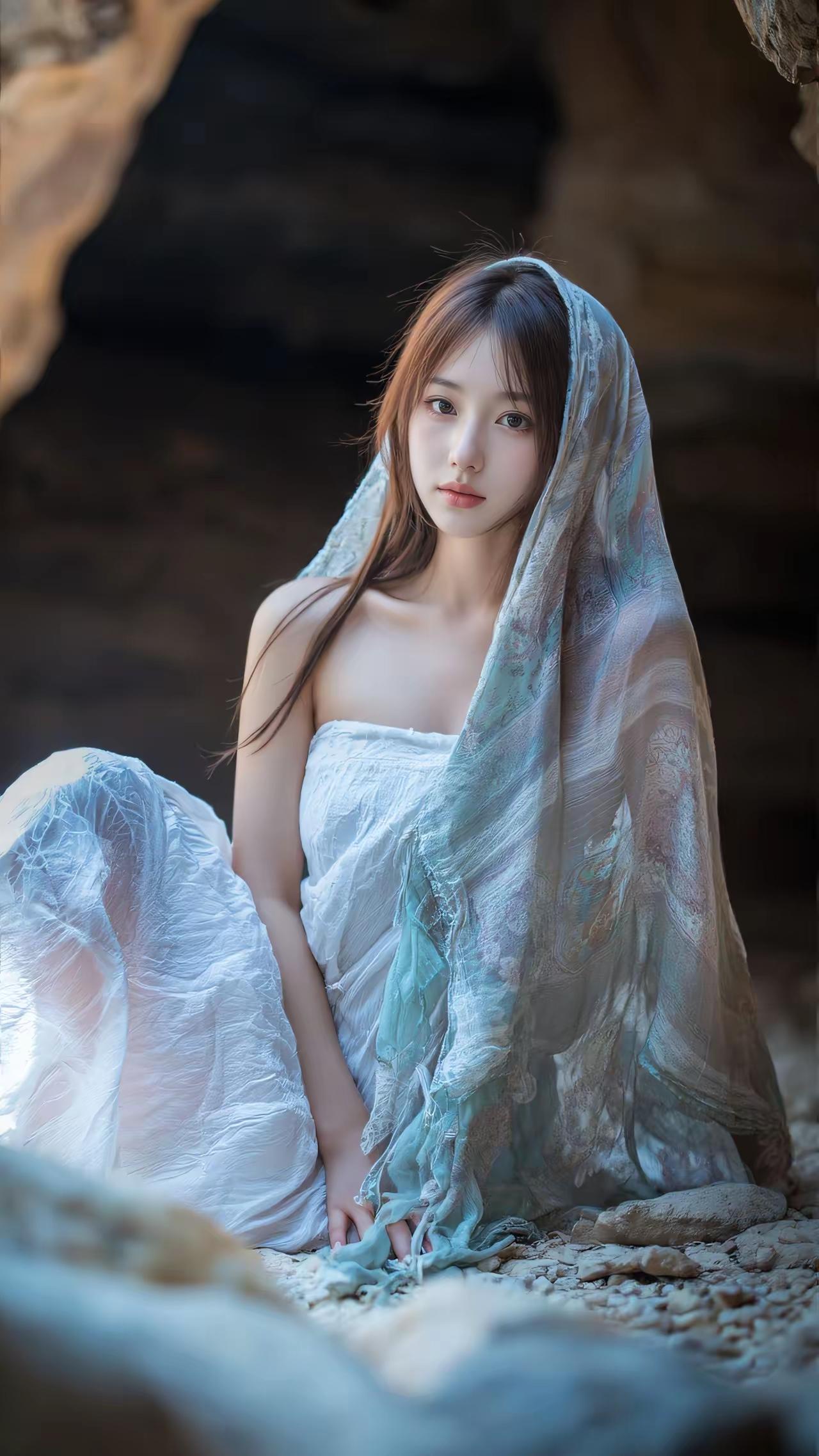 AI美女~石穴藏幽,光影轻漫。外界的喧嚣被隔绝在岩壁之外,只剩这一方天地的静谧,与她眼底的澄澈,漾开一抹不染尘俗的温柔