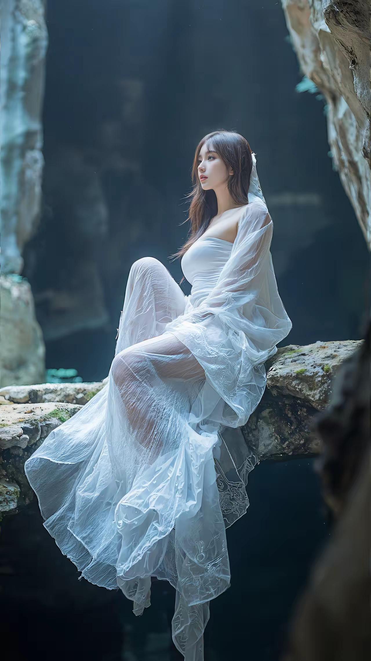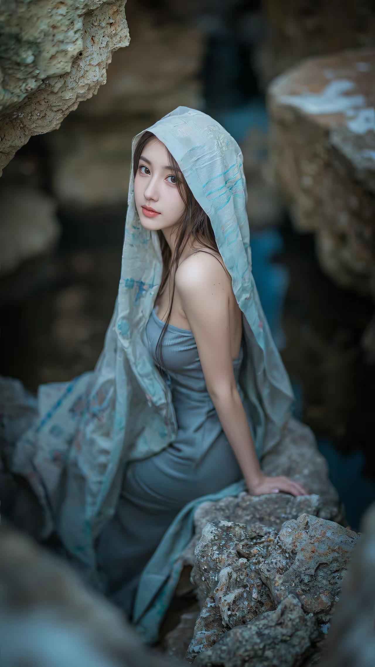 AI美女~石穴藏幽,光影轻漫。外界的喧嚣被隔绝在岩壁之外,只剩这一方天地的静谧,
