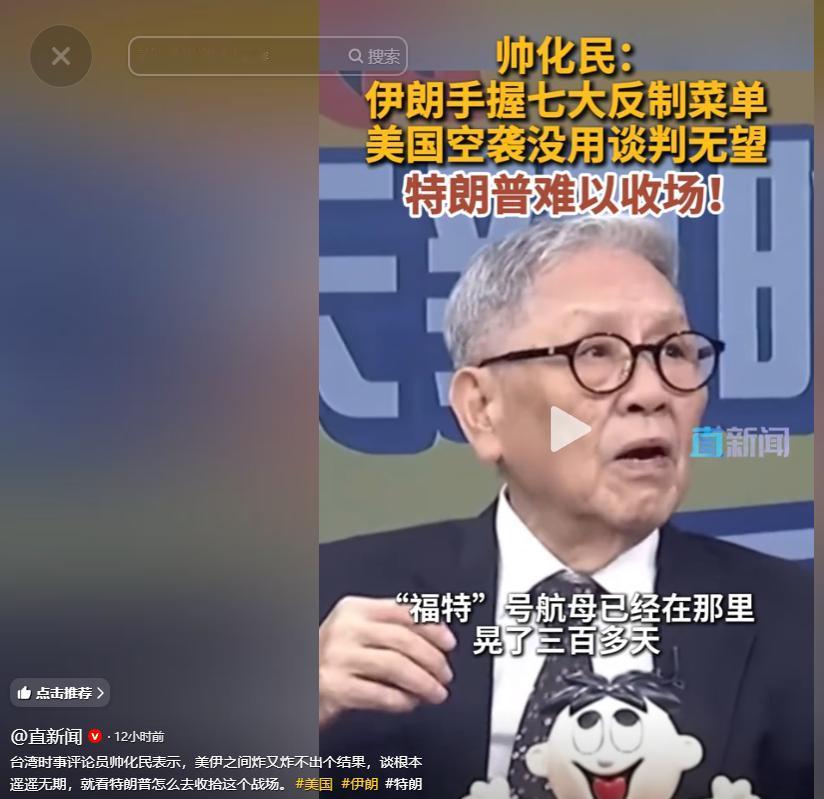 台湾时事评论员帅化民近日在节目中直言不讳地指出,当前美伊之间的博弈已经陷入了一个极其尴尬的死局:炸又炸不出个结果,谈根本遥遥无期,最终这场烂摊子怎么收拾,关键还是要看美国总统特朗普的下一步棋怎么走。