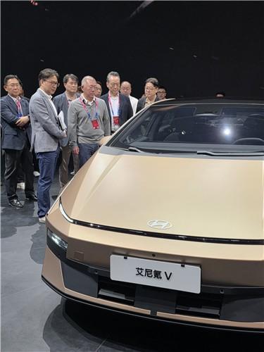 他还在北京现代展区检查了现代汽车旗下全新电动汽车专属品牌IONIQ(艾尼氪)的中国首款车型“艾尼氪V”,以及中国市场战略。(韩联社)