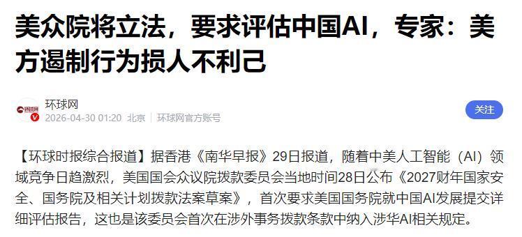 当地时间4月28日,美国众议院拨款委员会公布2027财年相关拨款法案草案,首次在涉外事务拨款条款中加入涉华AI内容,要求国务院180天内提交中国AI发展详细评估报告,还要明确列出中国AI领域的标杆企业。