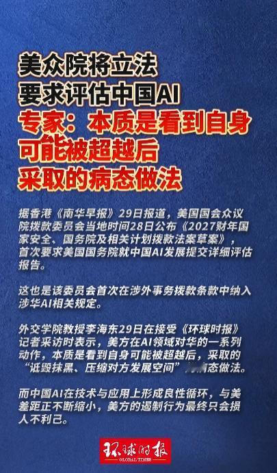 外交学院教授李海东在接受媒体采访时明确指出,美方在AI领域对华的一系列动作,本质上是看到自身可能被超越后,采取的诋毁抹黑、压缩对方发展空间的病态做法。