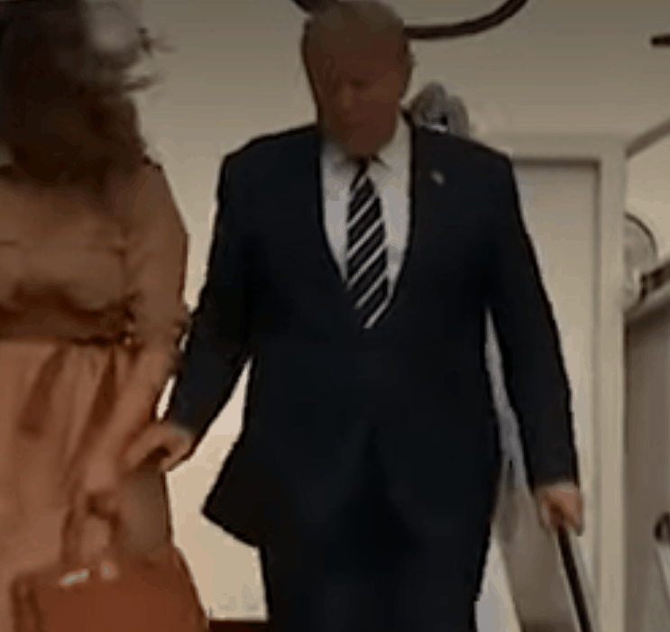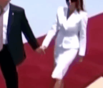 我是看了好几遍,挺有意思的,川普老是想牵他老婆梅拉尼娅的小手,但是,他老婆呢?已经好几次不给他面子了。这都是大场面啊!那么多美媒的摄像机都盯着呢。这个都是真实的场景。转化为动图,不是虚假的。