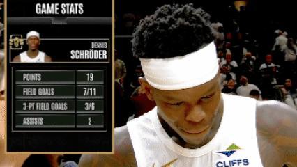 第二节球队一度被猛龙暴锤,带着 3 分劣势进入末节时,正是施罗德用关键连得 5 分稳住了局面,为骑士逆转打下了基础。