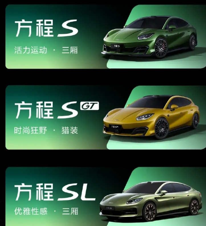• 方程S全新轿车家族:车展首发,多版本覆盖中高端家用及年轻群体。