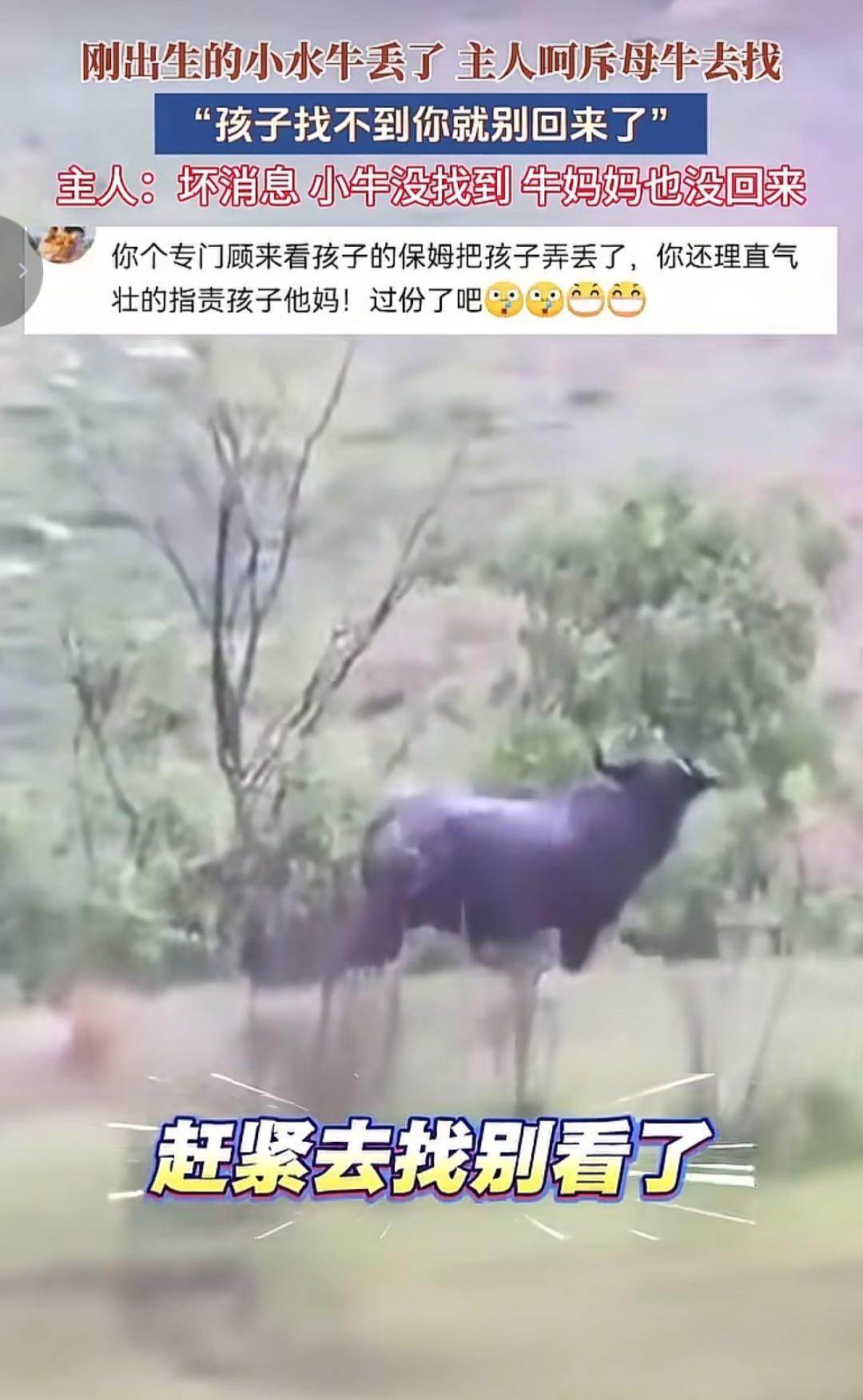 对着站在雨里垂头丧气的母牛,小王气急败坏地吼了一嗓子:“孩子你找不回来,你也别回来了!”