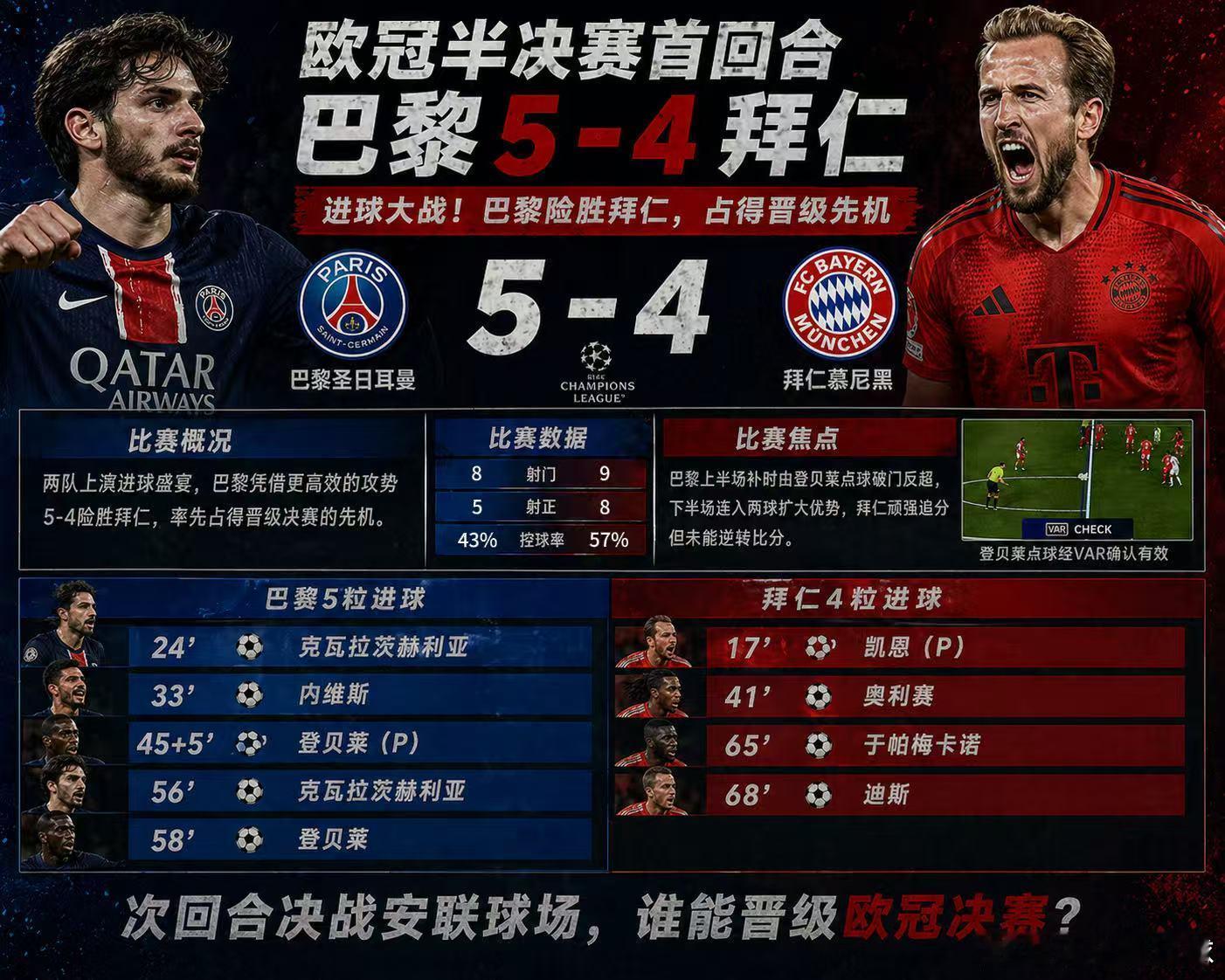 尤其是巴黎5-4拜仁这场对轰,半场补时那个点球几乎成了分水岭。当时戴维斯在防守中,皮球先击中腿部,再折射碰到手臂,经过VAR介入后依旧给了点球,直接改变了比分走势,也让巴黎完成反超。