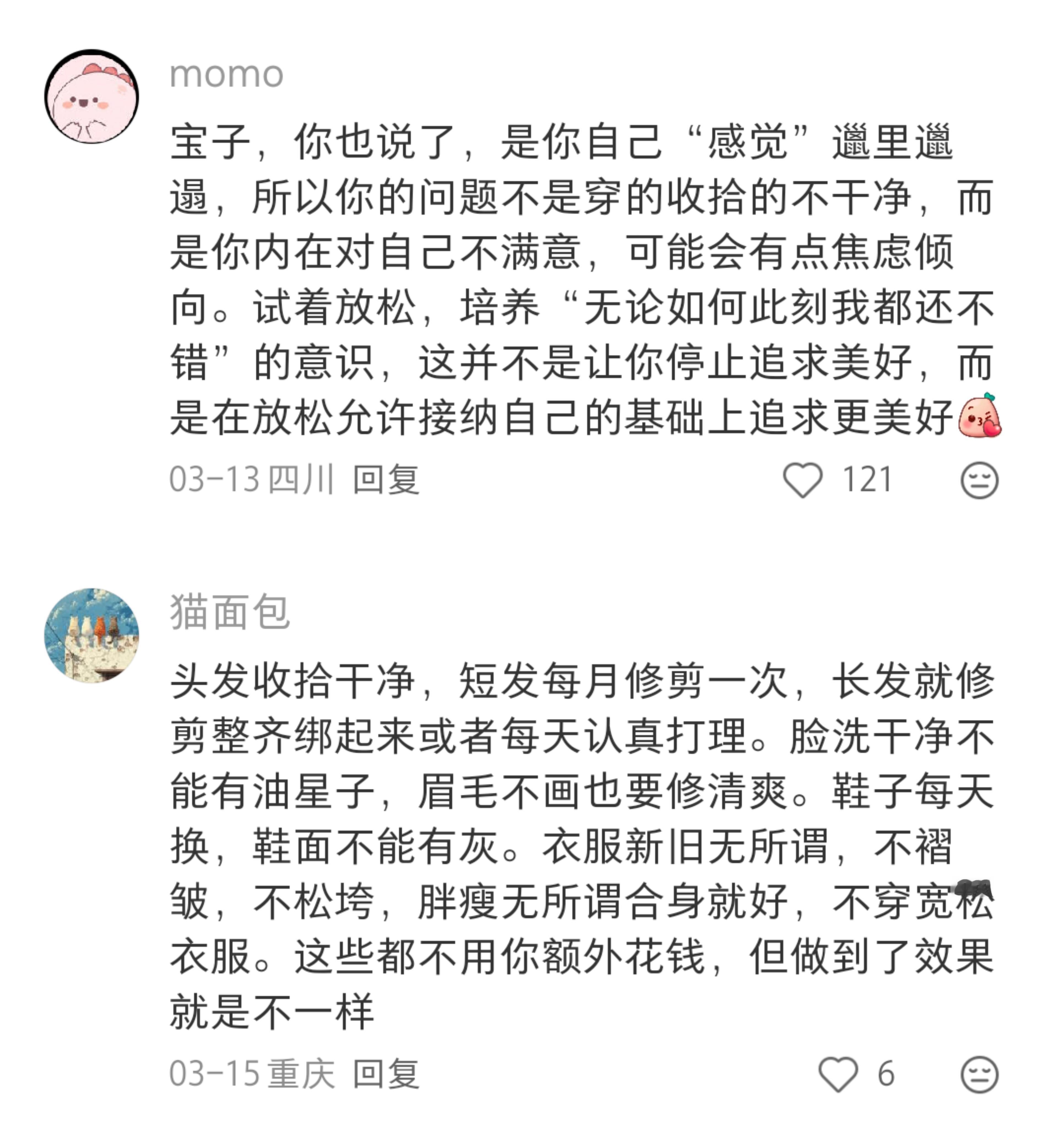 明明穿的很干净了,但是还是感觉自己邋里邋遢的