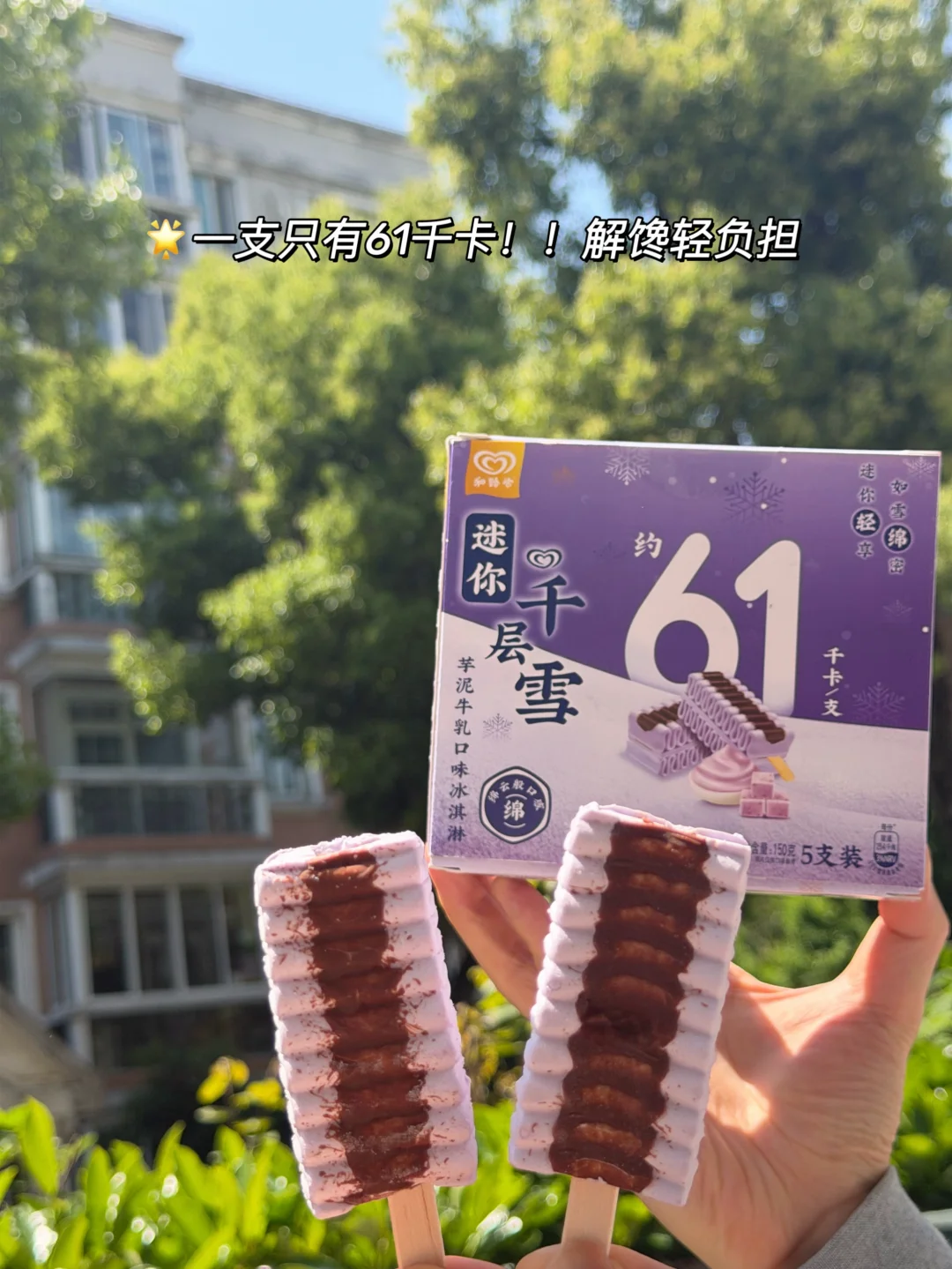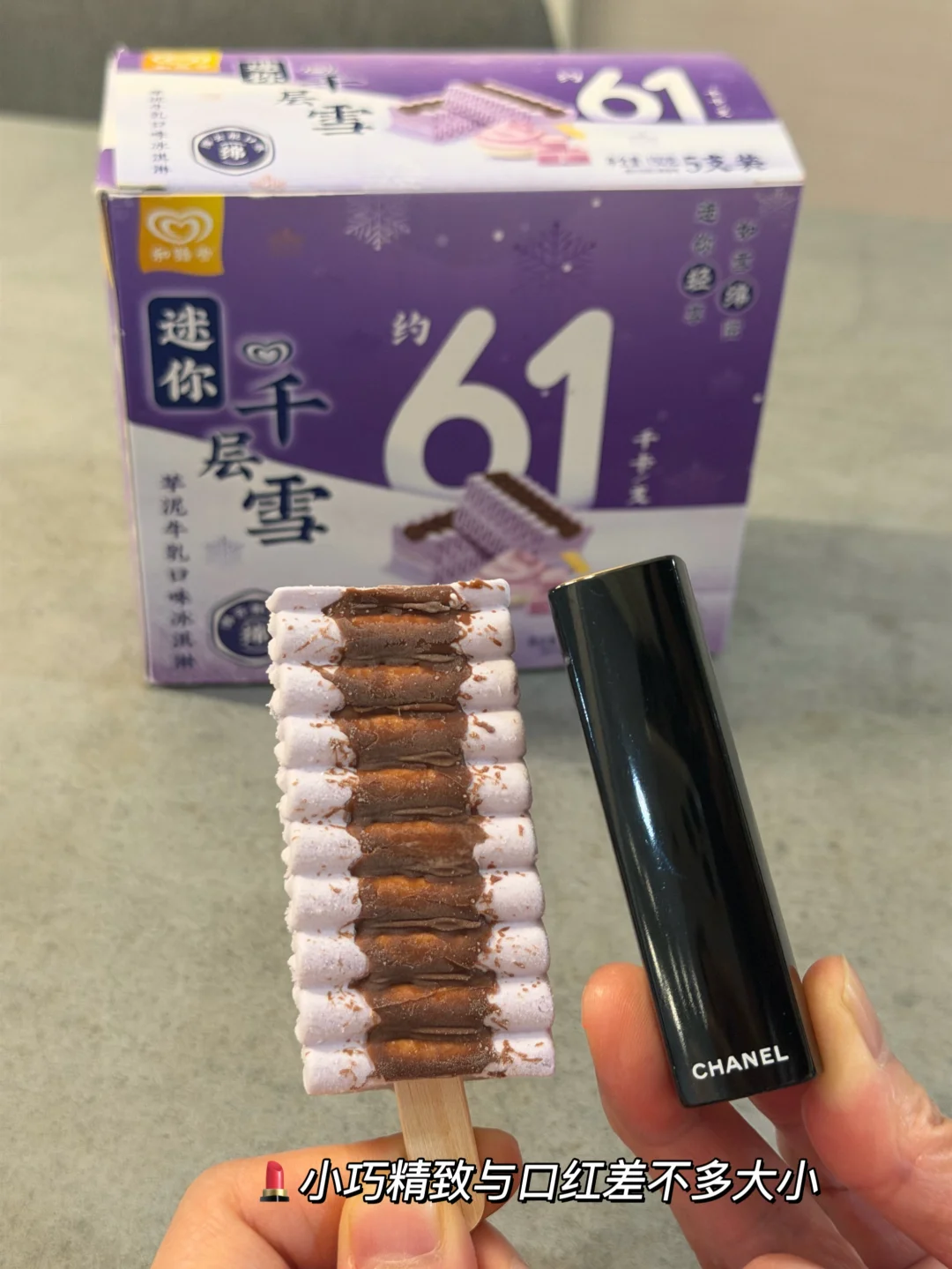 👉迷你千层雪冰淇淋是我的安心选择!迷你尺寸不多不少刚刚好,与口红差不多一般大小,满足口腹之欲的同时也没啥负担,小小一根只有61千卡,除了我最爱的芋泥口味以外,还有香草、巧克力、生椰拿铁这些,满足大家不同的喜好自律的同时还能满足口腹之欲,才能更好地坚持下去!