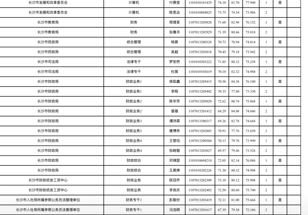长沙市2026年考试录用公务员综合成绩排名及