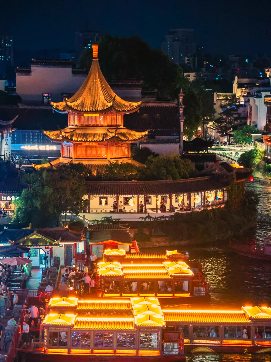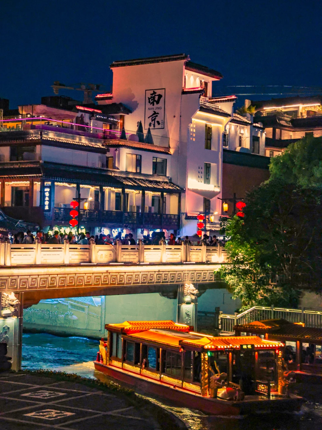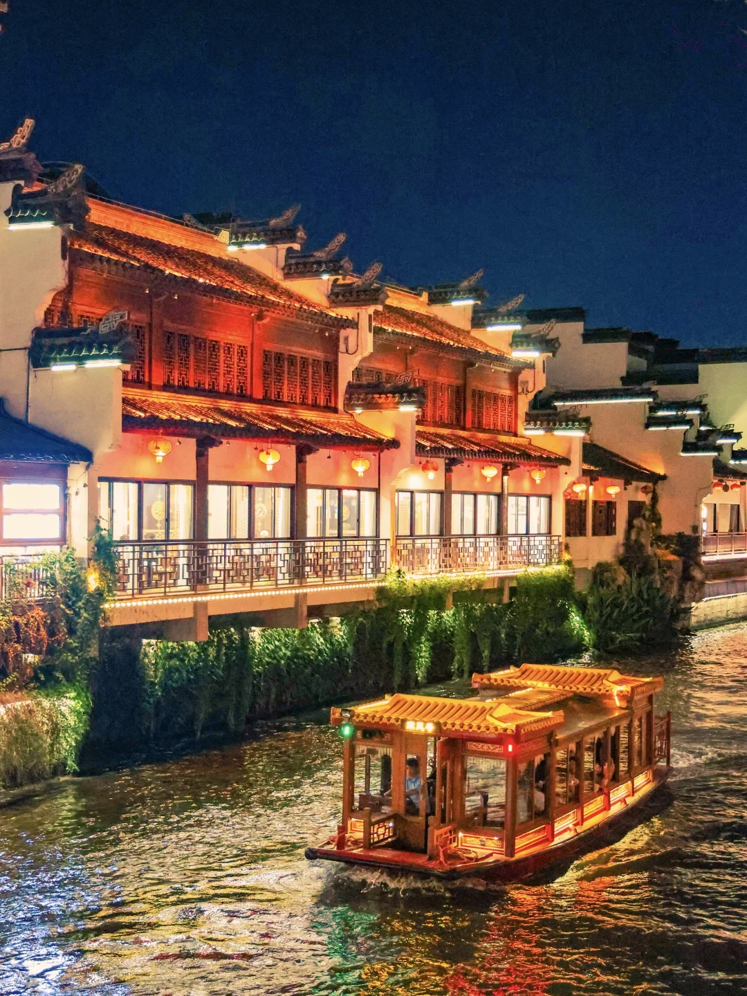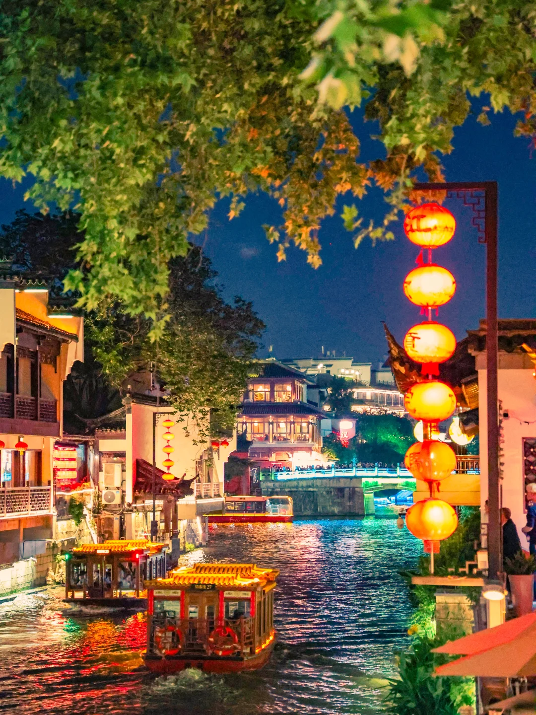 白墙黛瓦枕着秦淮流水,青砖老街蜿蜒错落,画舫游船缓缓穿行碧波之上,涟漪轻漾,一河两岸尽是温婉雅致的江南古韵,尤其是夜晚,可以体会现实版的“夜泊秦淮近酒家”🏮