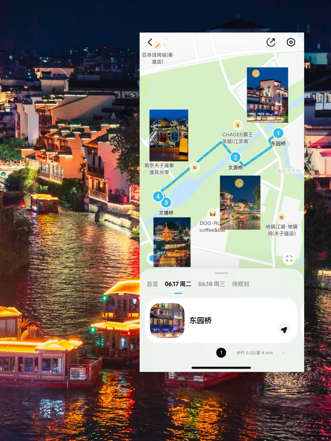 夫子庙北门→文德桥🌉→文源桥🌉→东园桥🌉