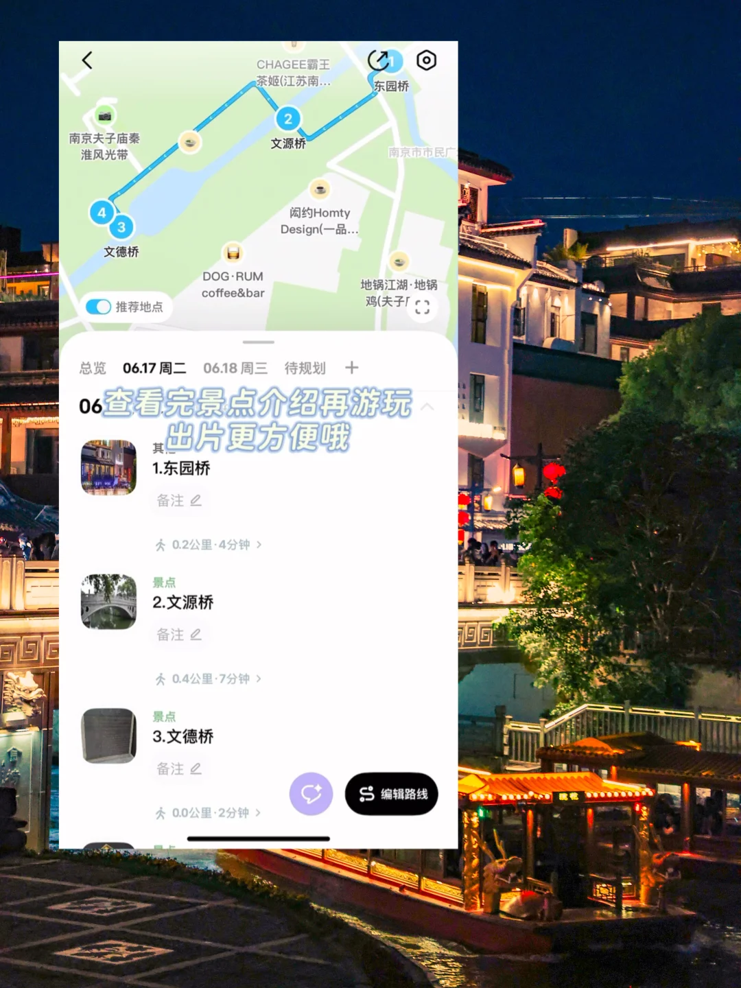 📝这次出门也是用规划路线的。不仅可以一键生成路线,不走弯路~还可以直接显示天气预报☀️和点亮打卡地。仪式感很足💯