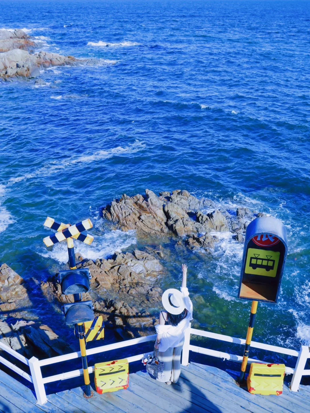 传说的小济州岛,各种海边文艺店、咖啡馆、铁轨花海、黄色相框、蓝色明信片、礼物盒子艺术装置,拍照超出片!